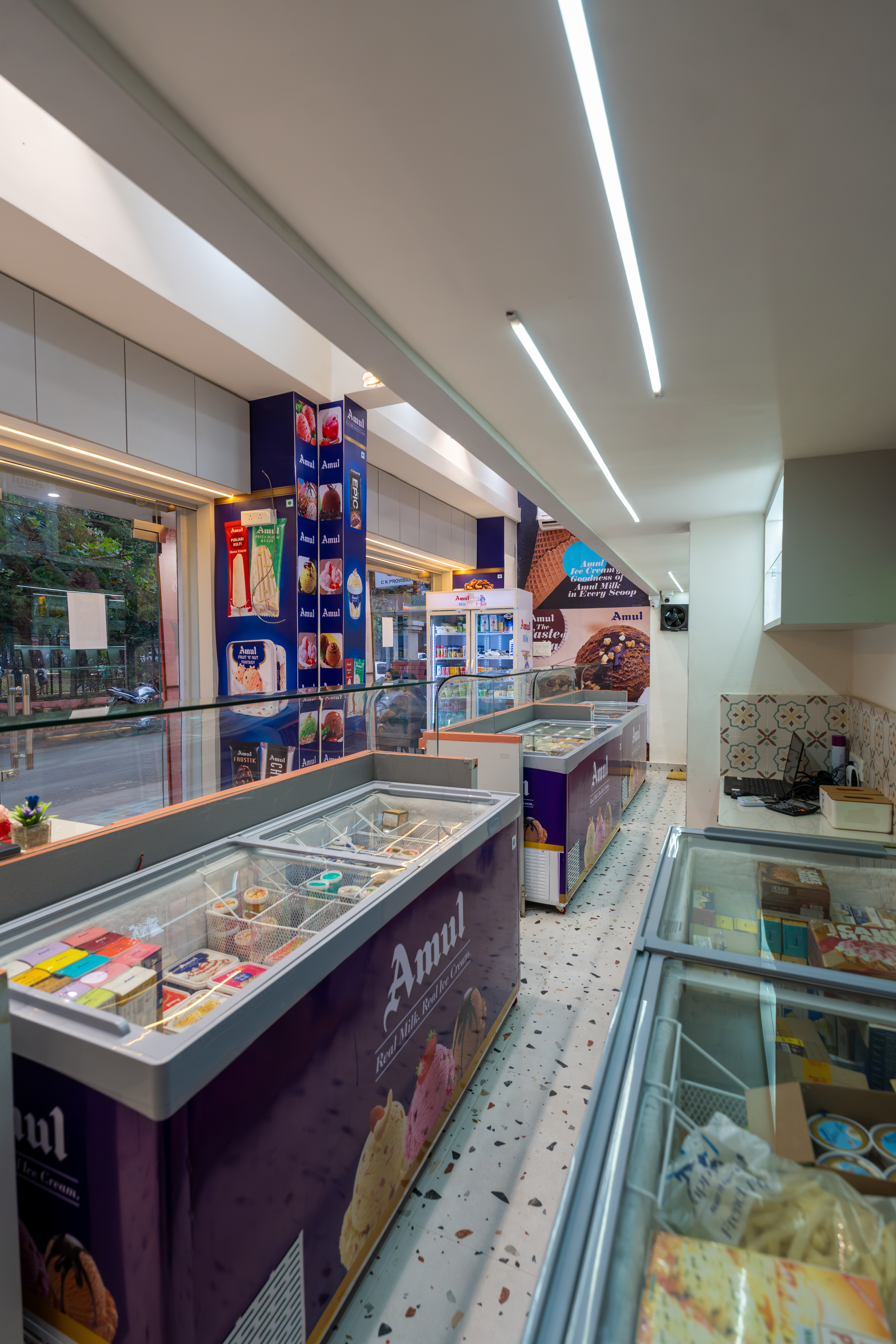 Strategically placed display freezers maximizing product visibility while maintaining easy accessibility.