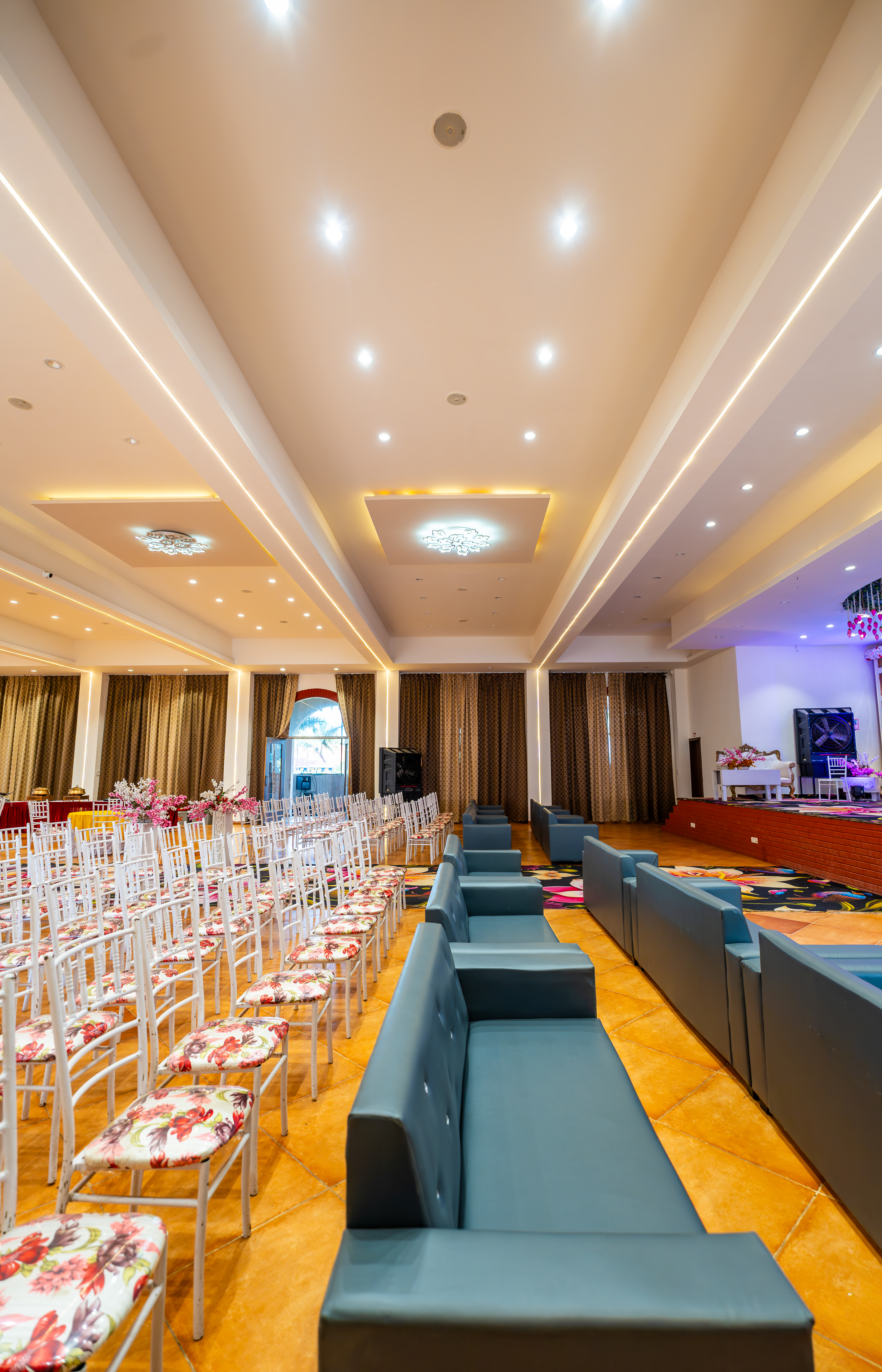 A balanced spatial layout aligning entry, seating, and stage to ensure smooth guest movement and event flow.