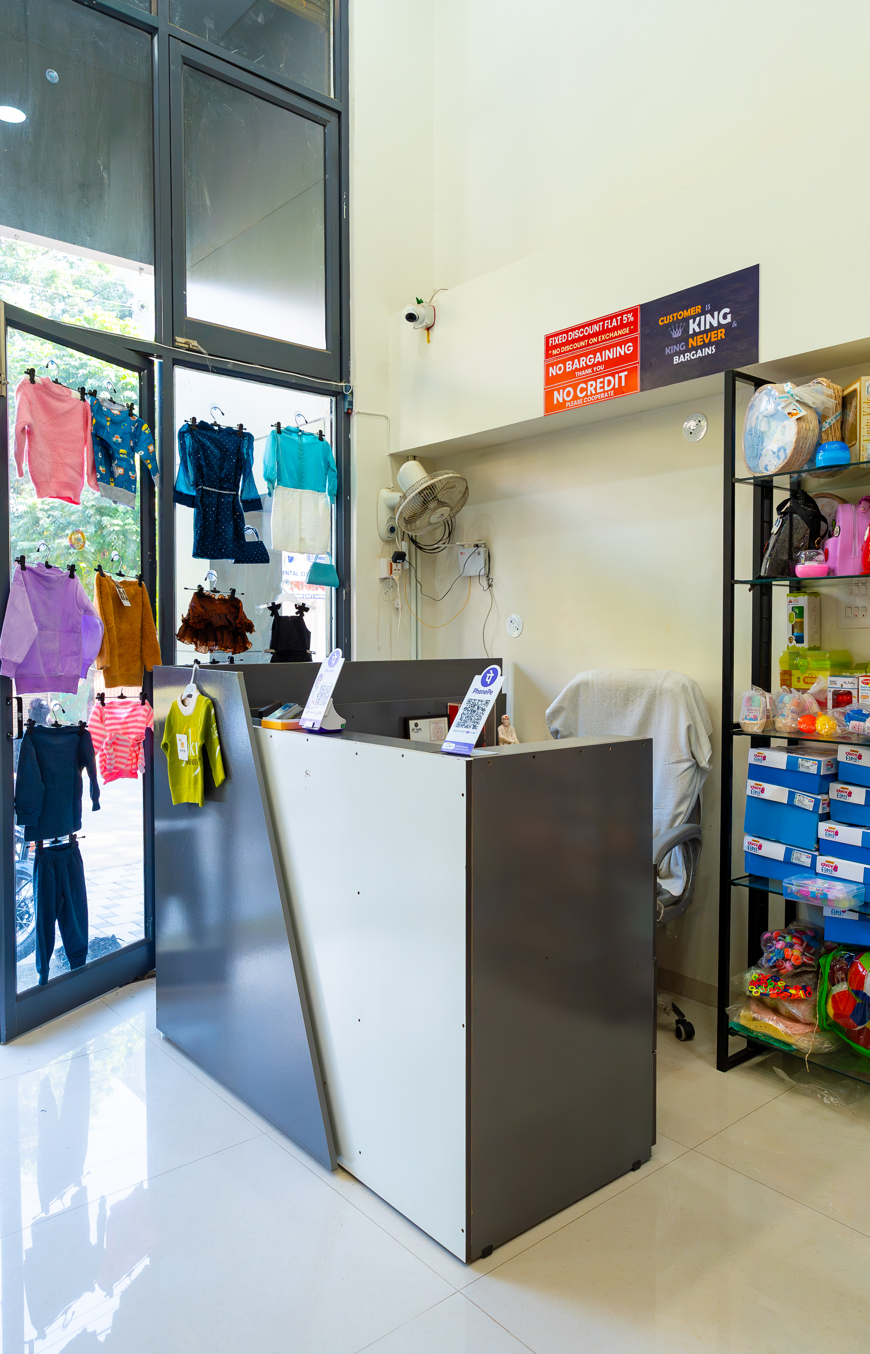 A compact and functional billing area positioned near the entrance for smooth checkout flow.