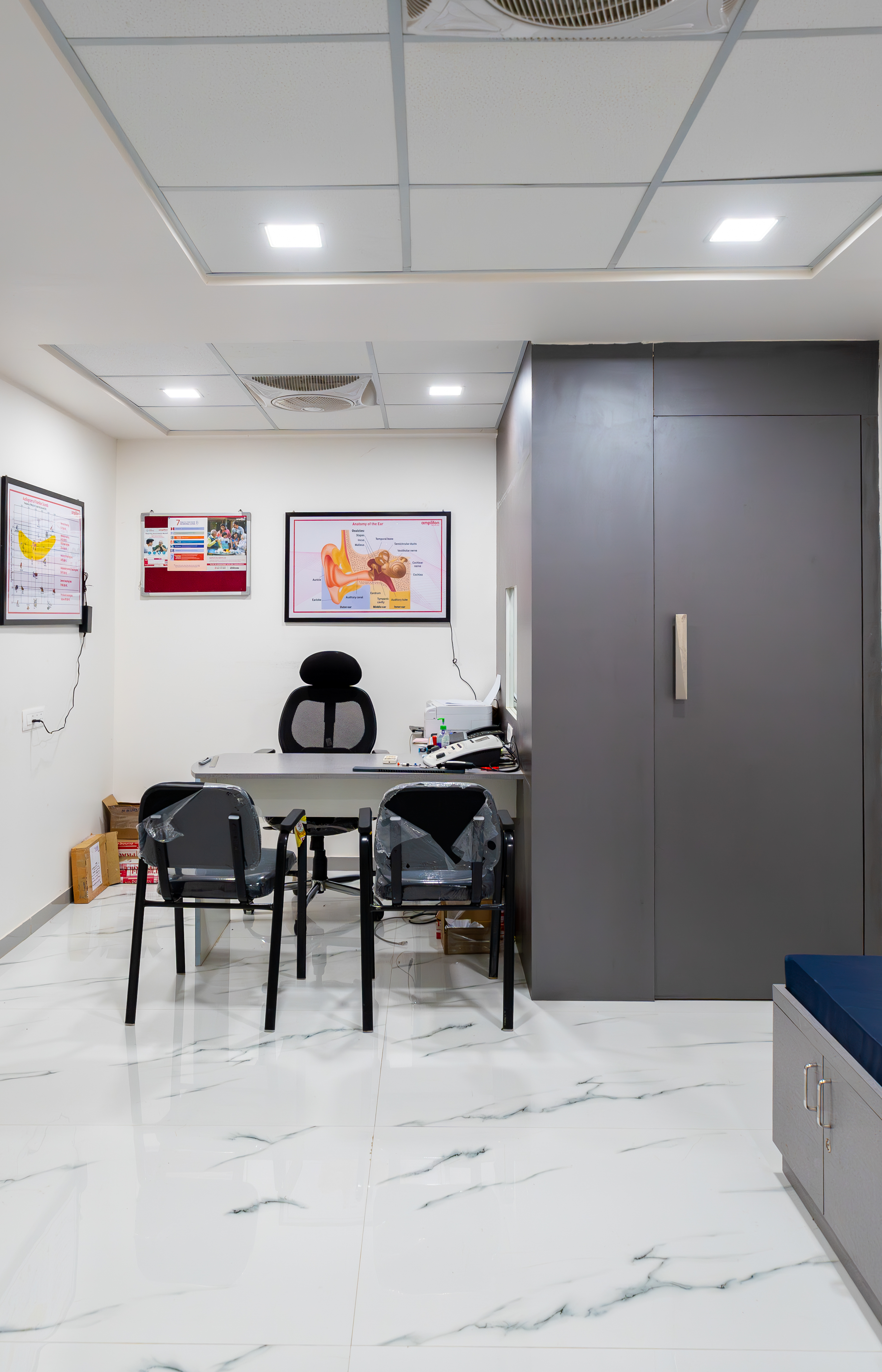 A clean and minimal seating layout designed for comfort, enhanced by soft tones and open space.