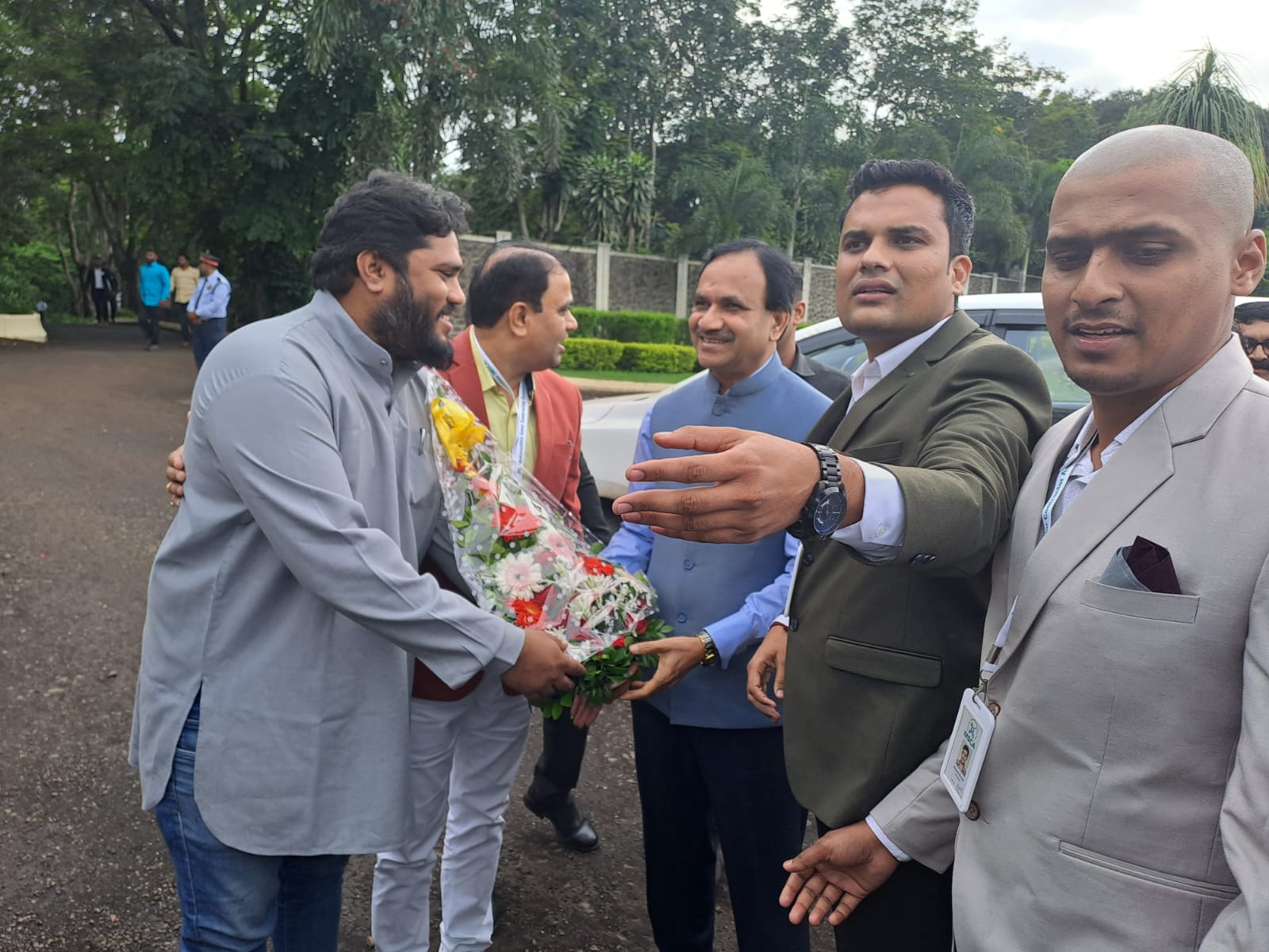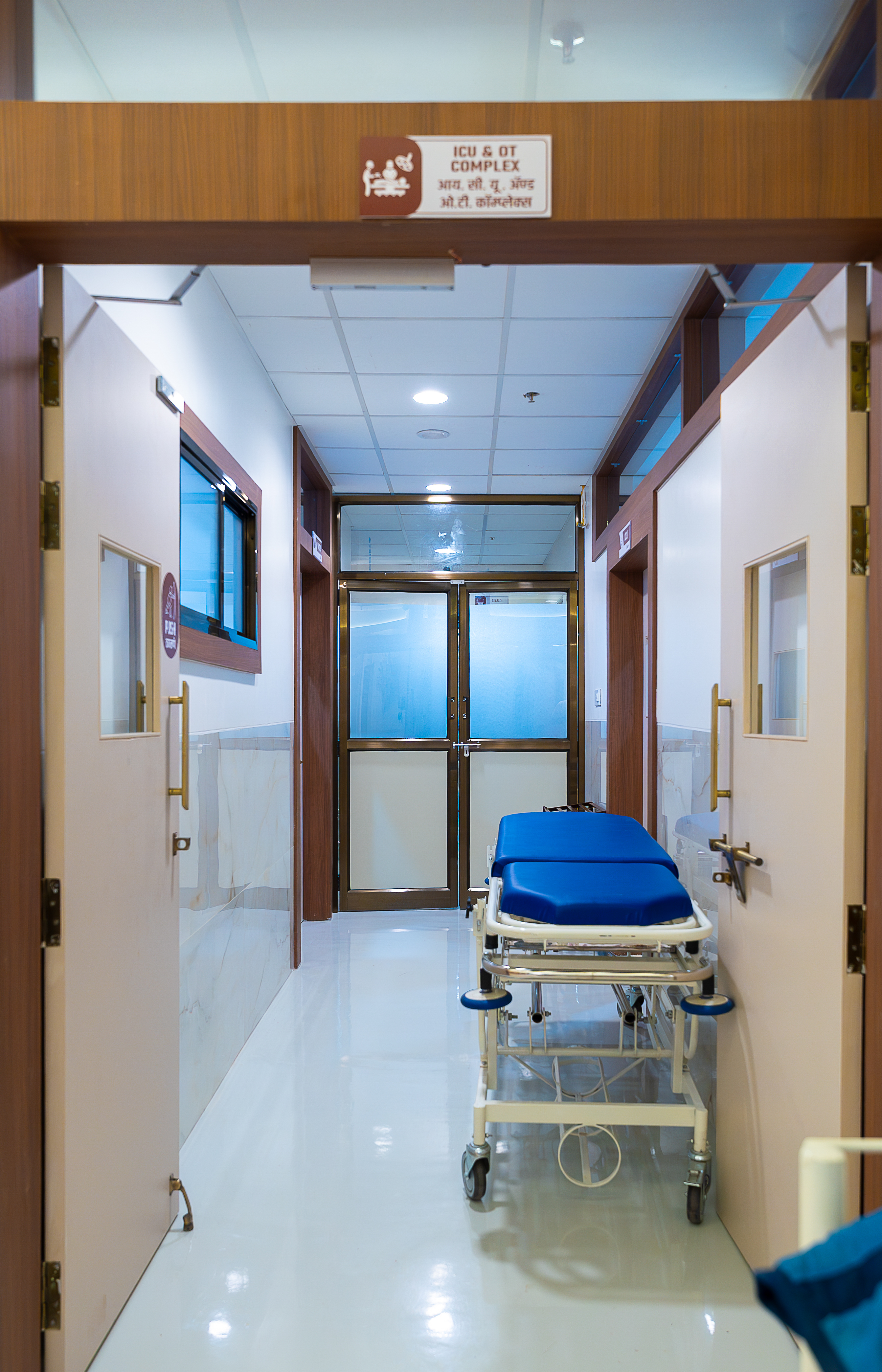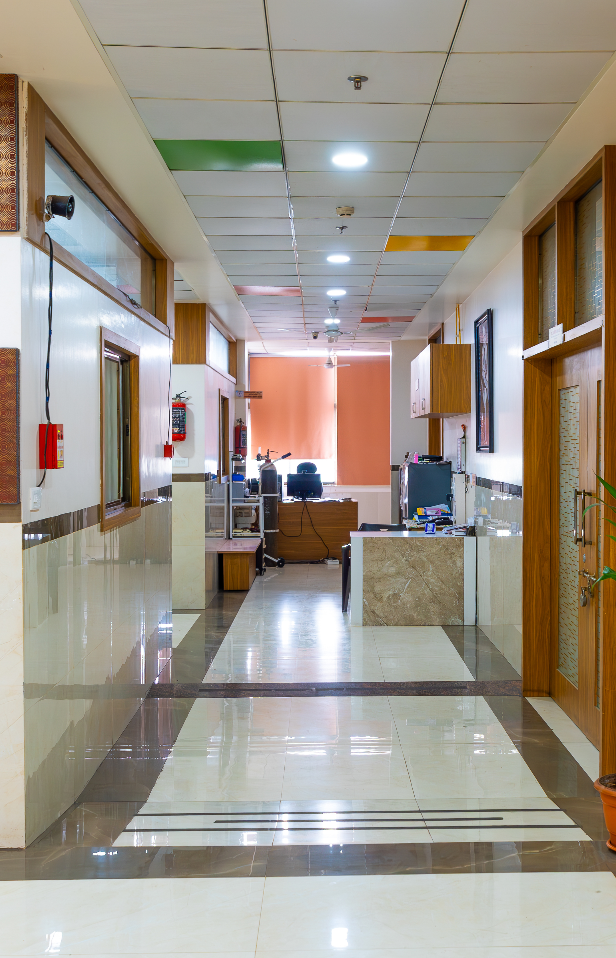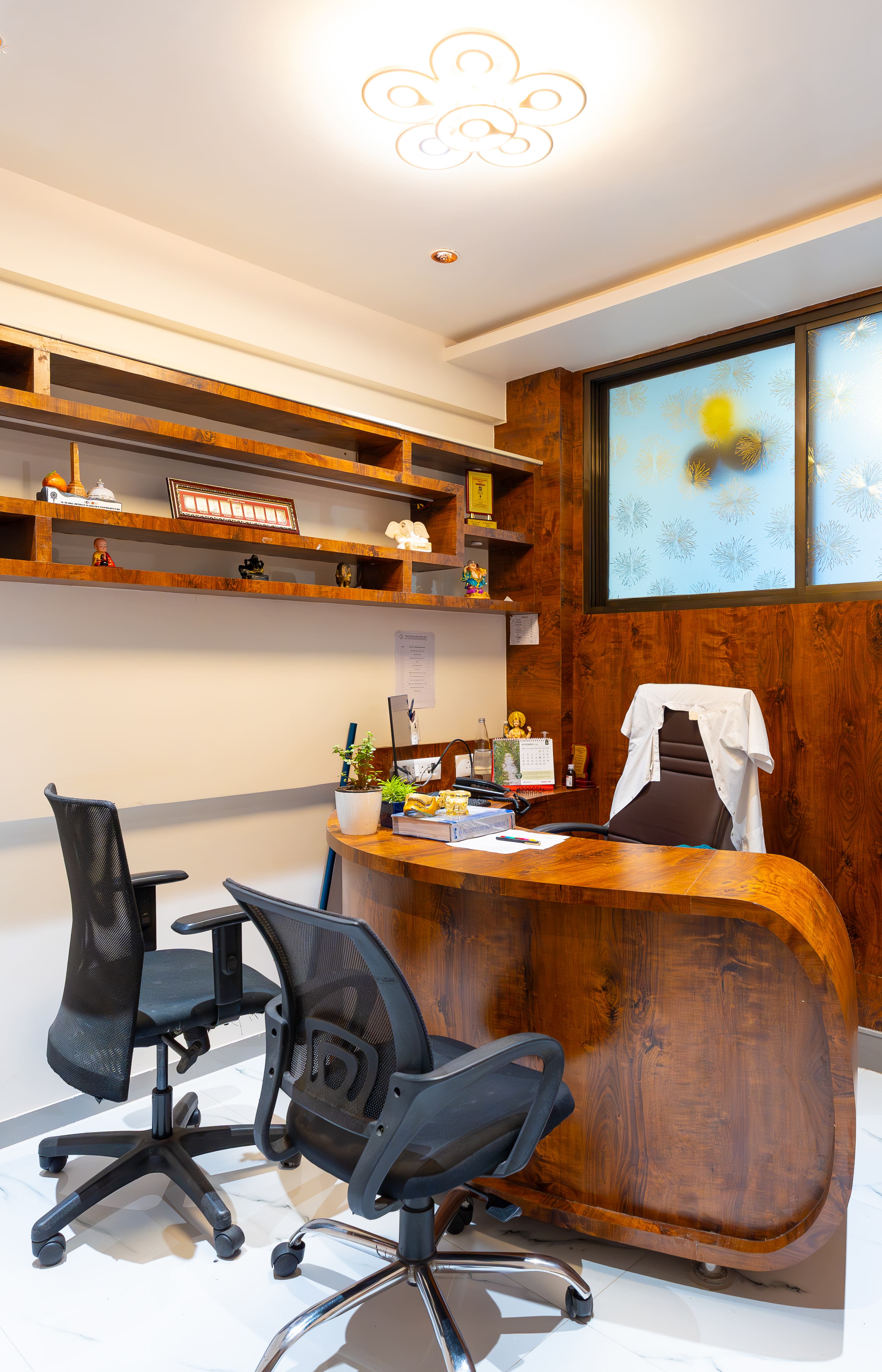 A custom-designed main door with intricate panel work, adding character and a strong first impression.