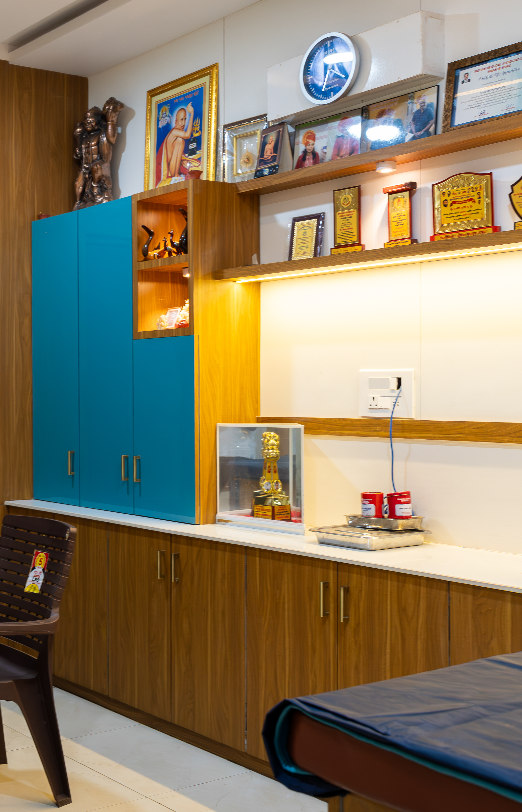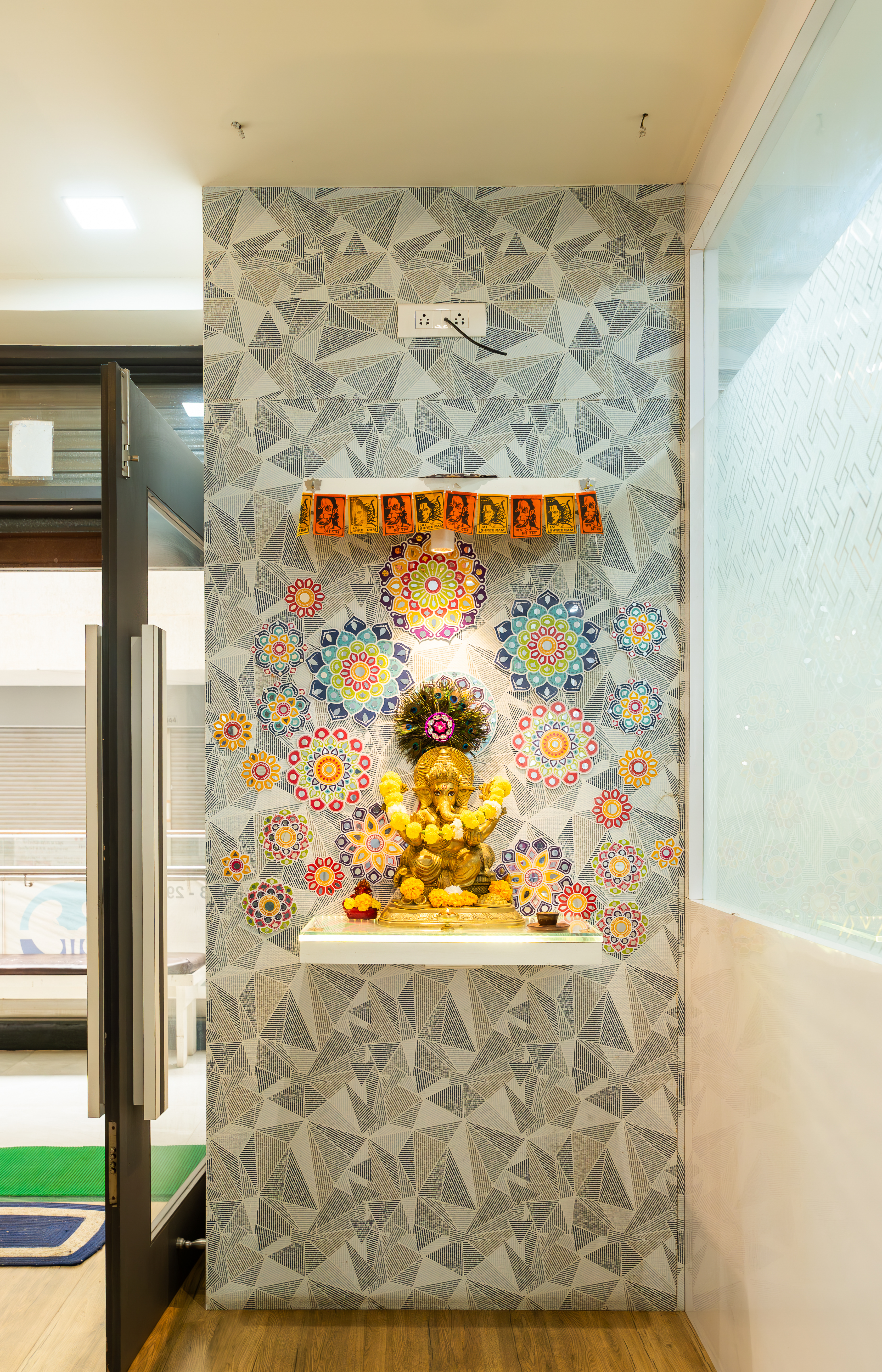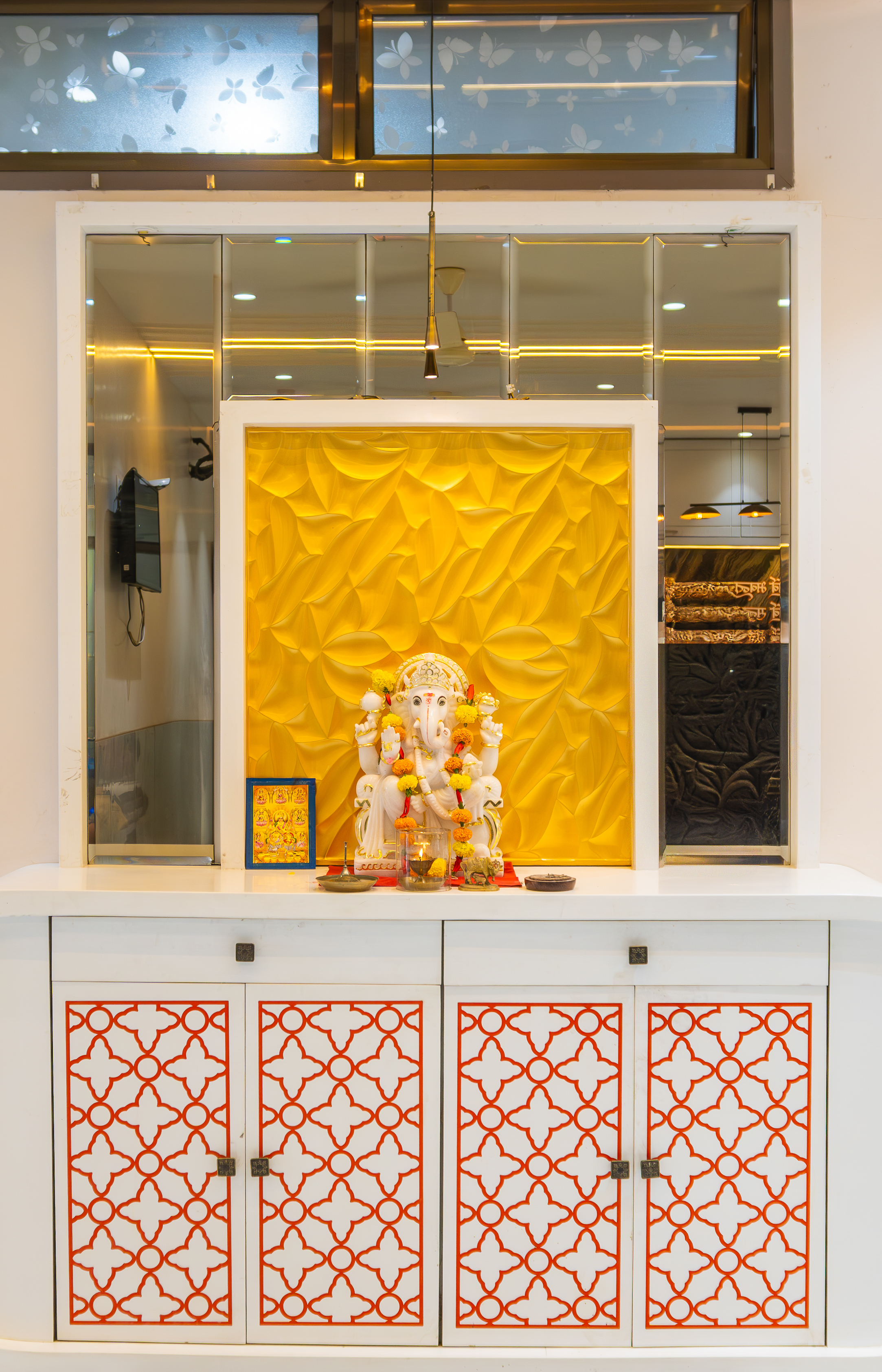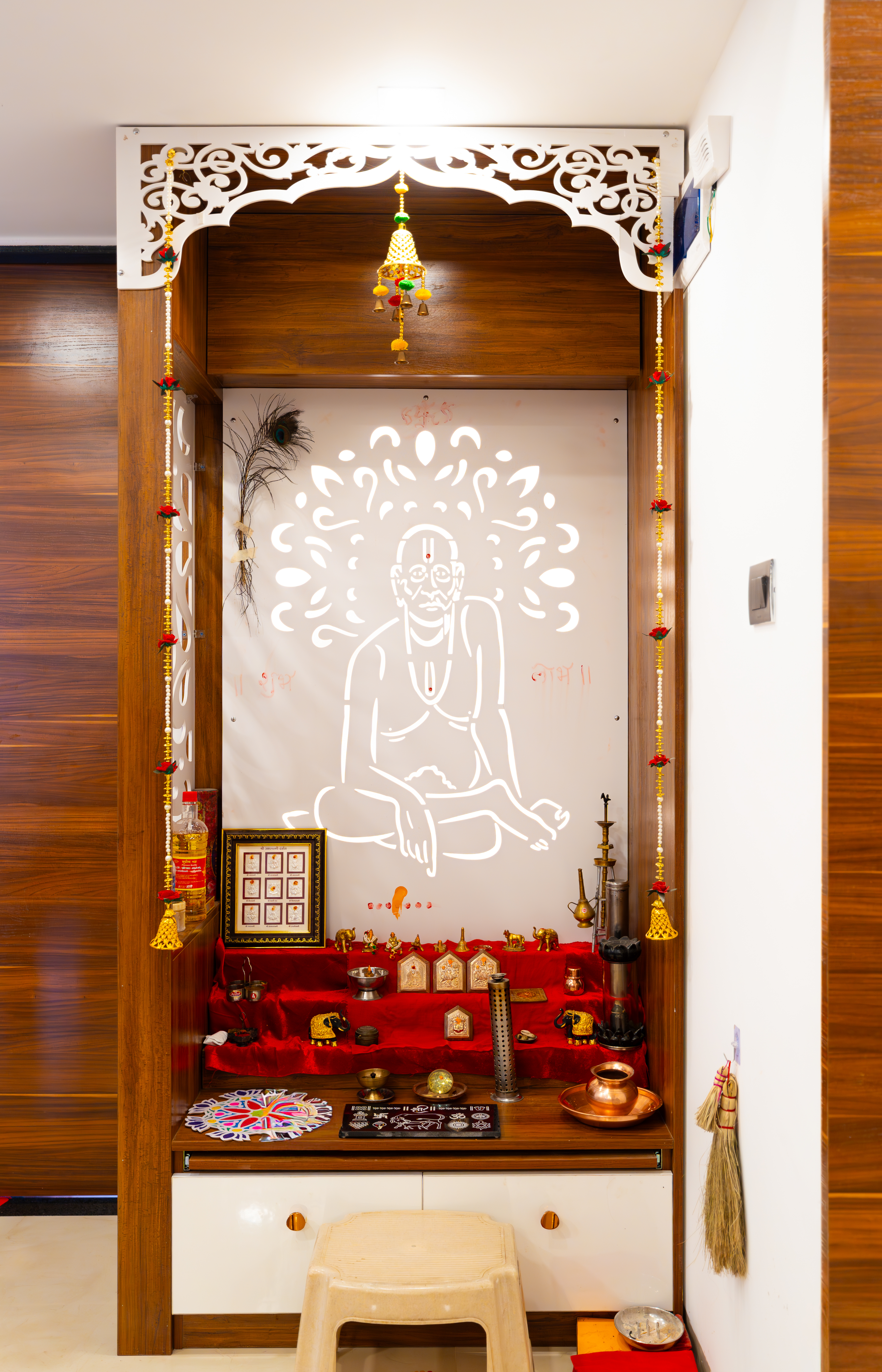 A beautifully illuminated mandir niche designed to bring warmth, focus, and spiritual calm into the home.