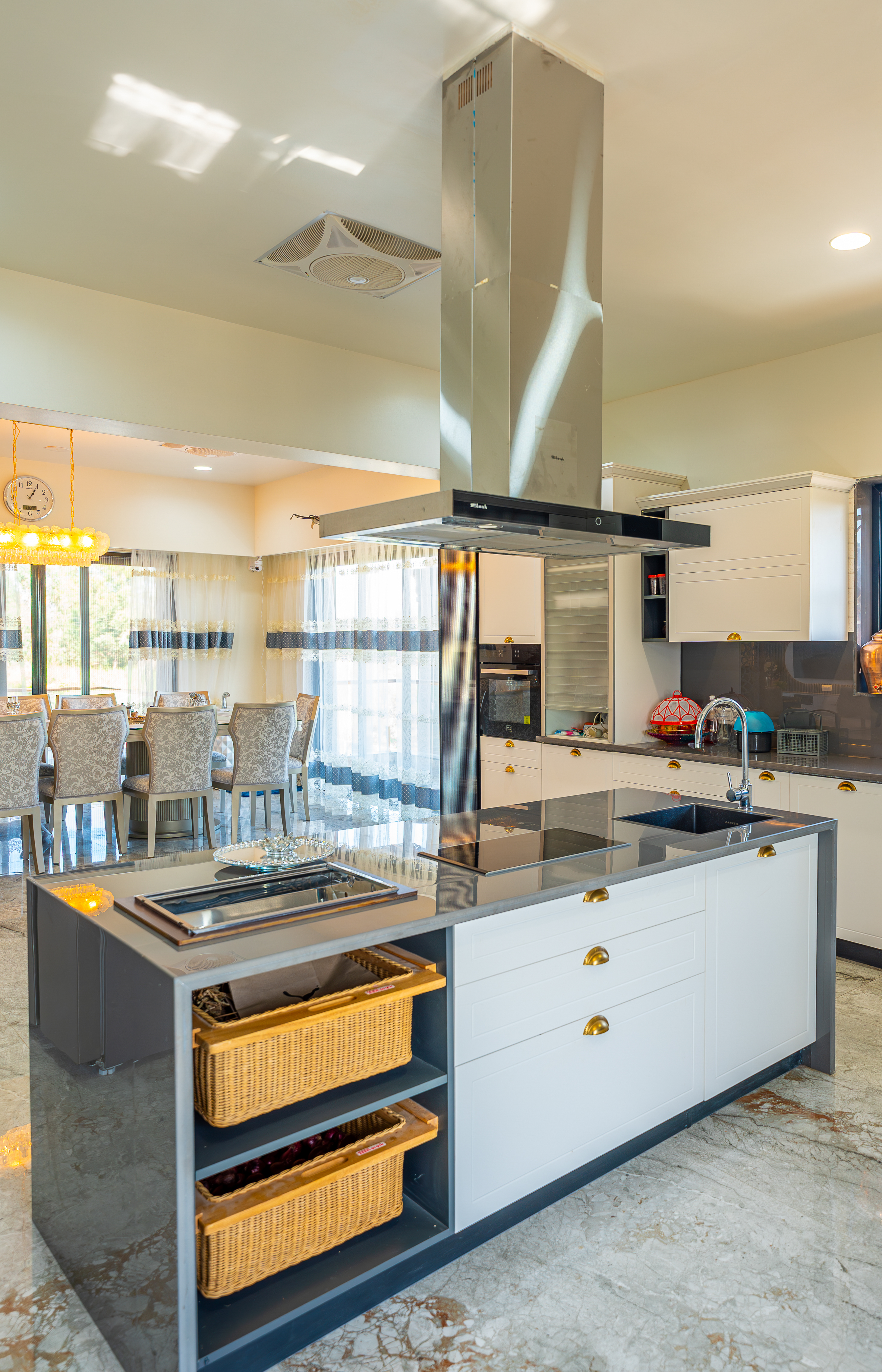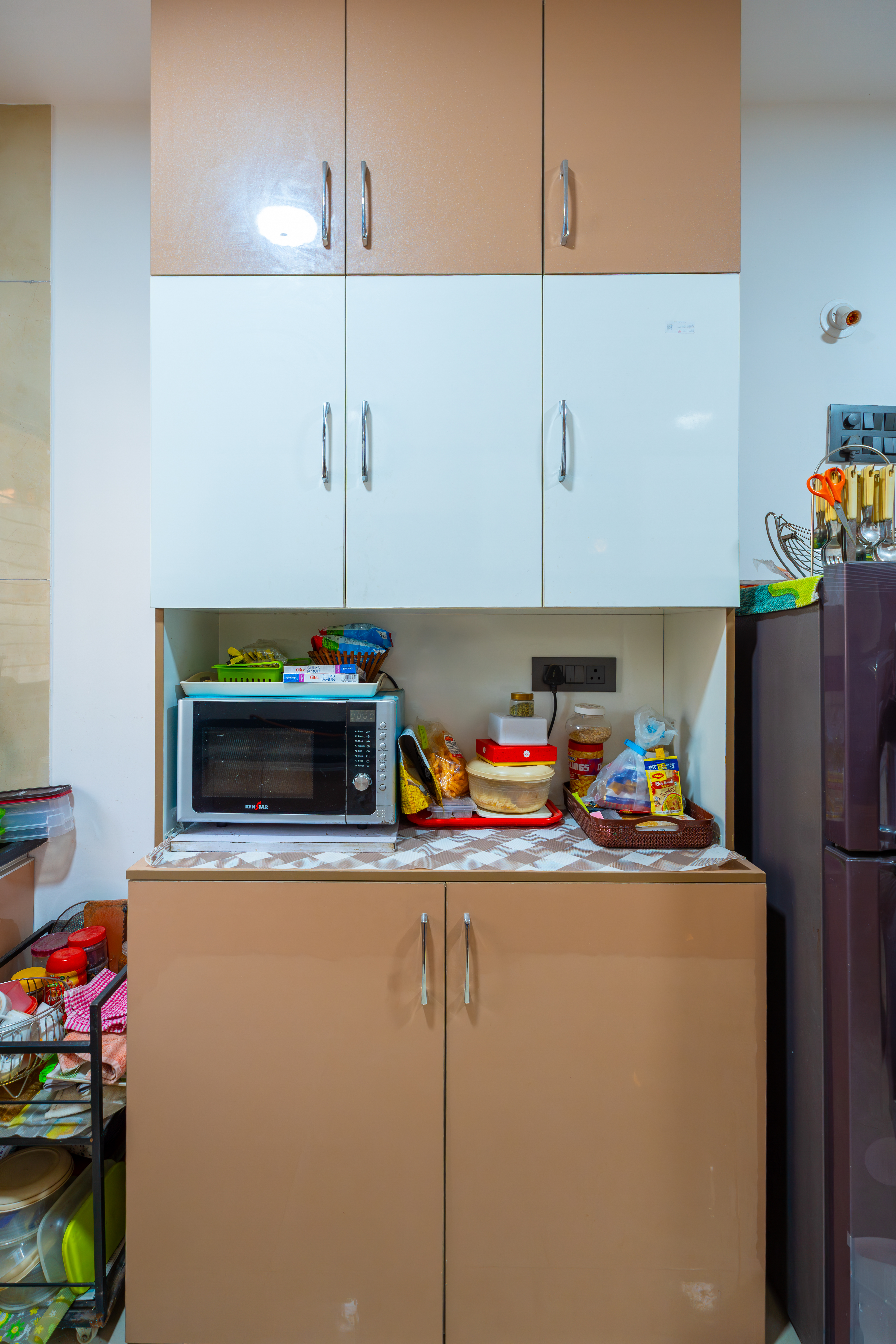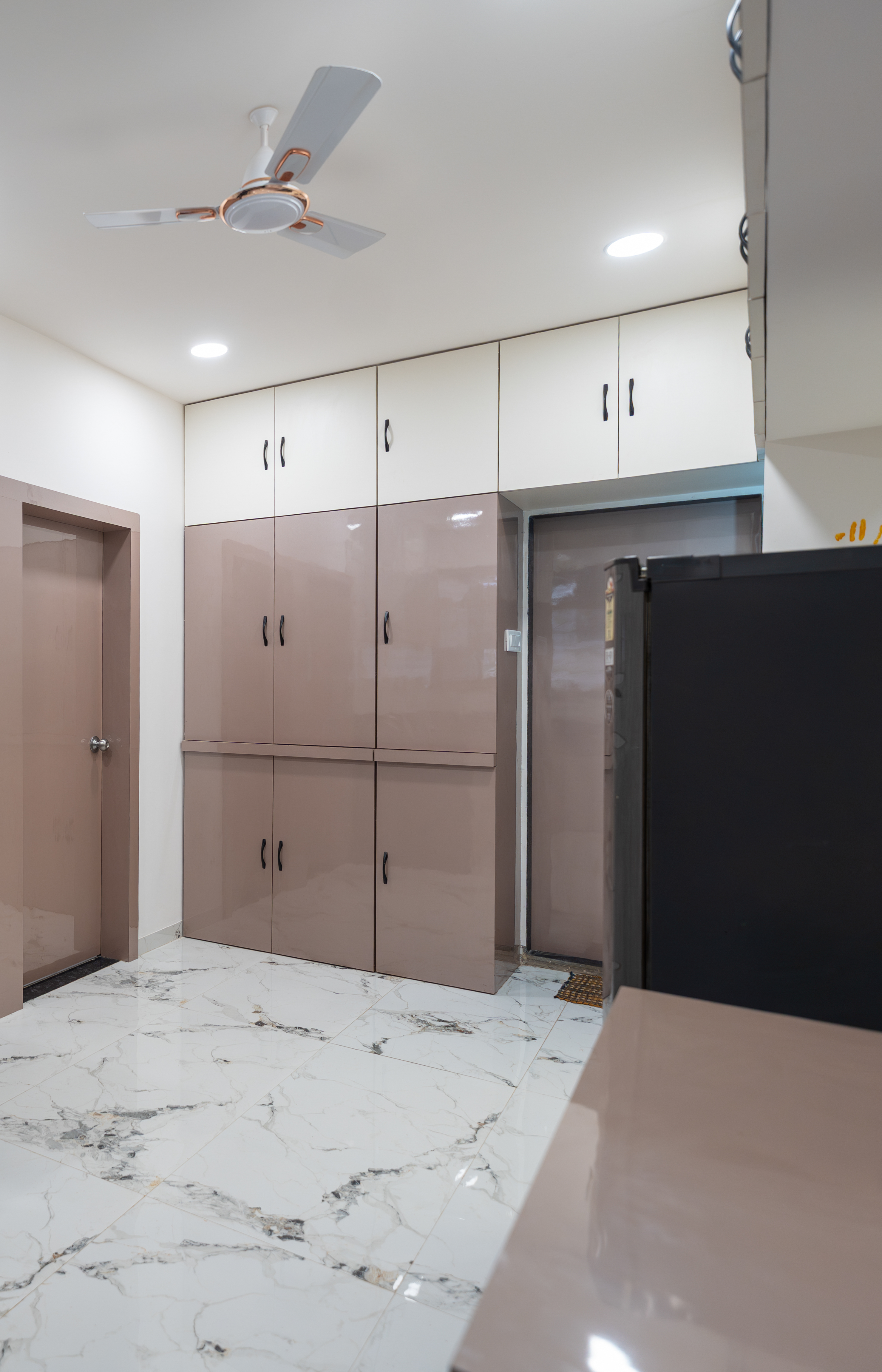 A well-planned modular kitchen designed for efficiency, with organized storage and a clean, minimal finish.