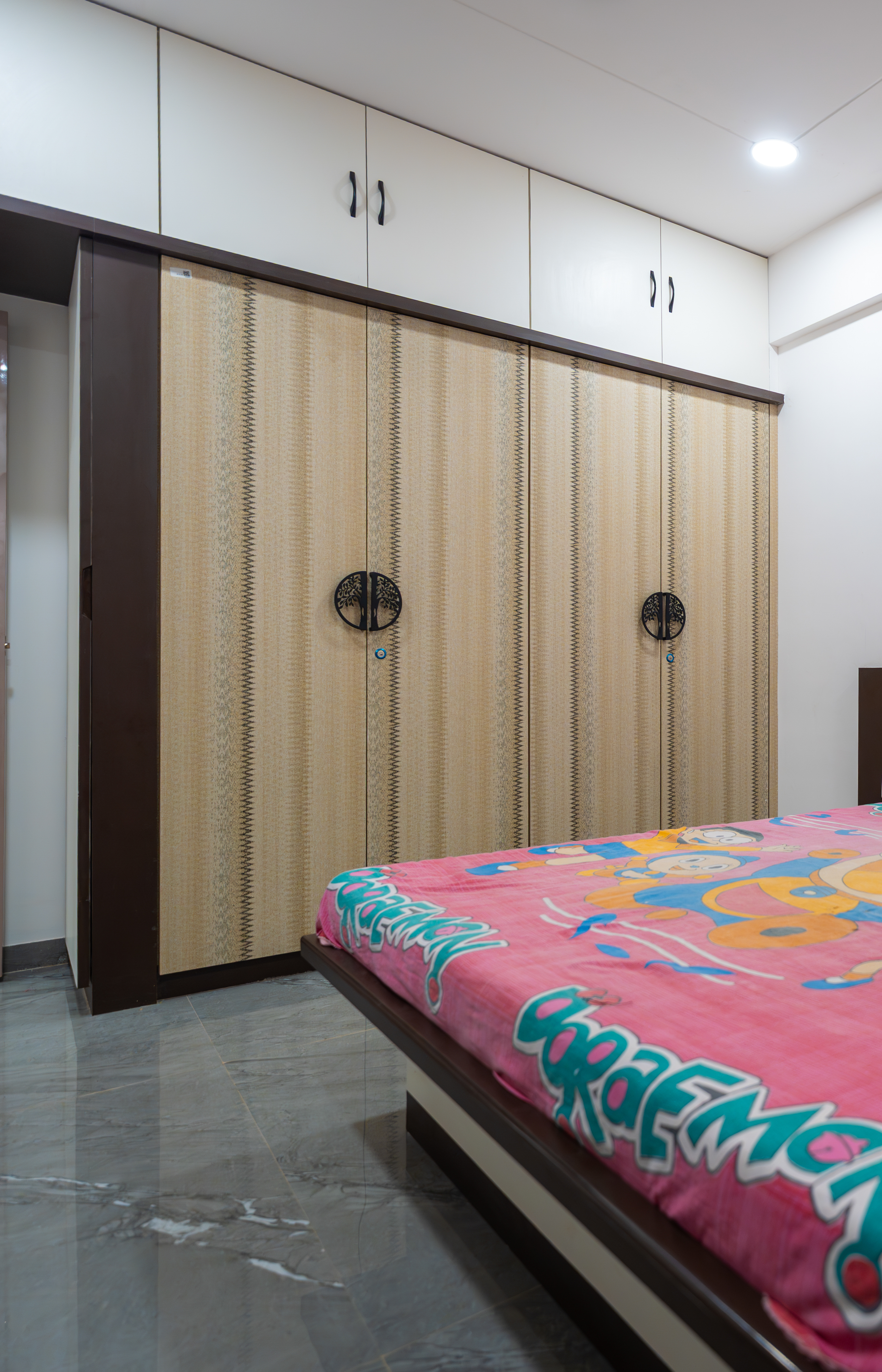 A functional wardrobe with clean paneling and ample storage, blending seamlessly with the room aesthetics.