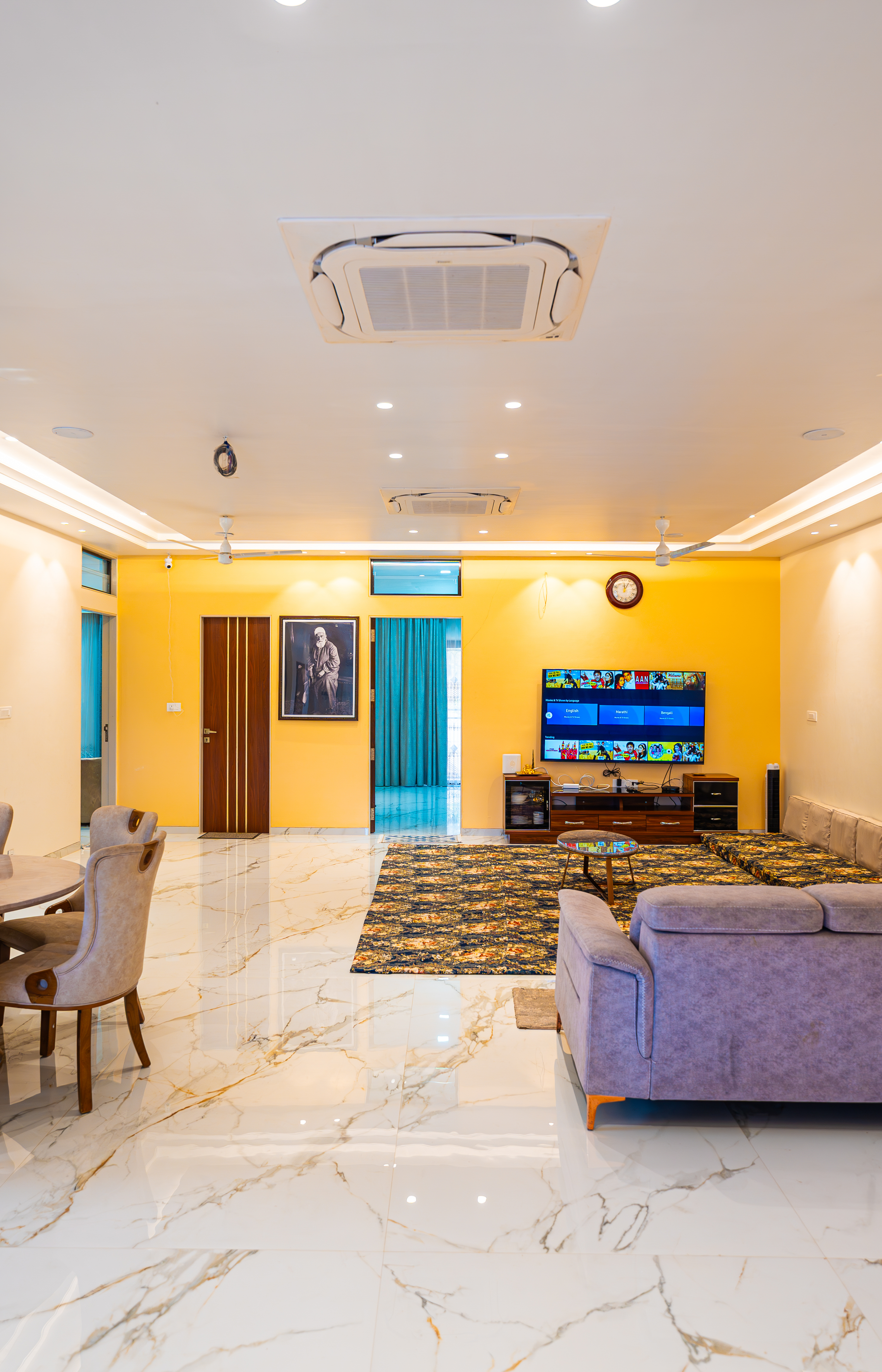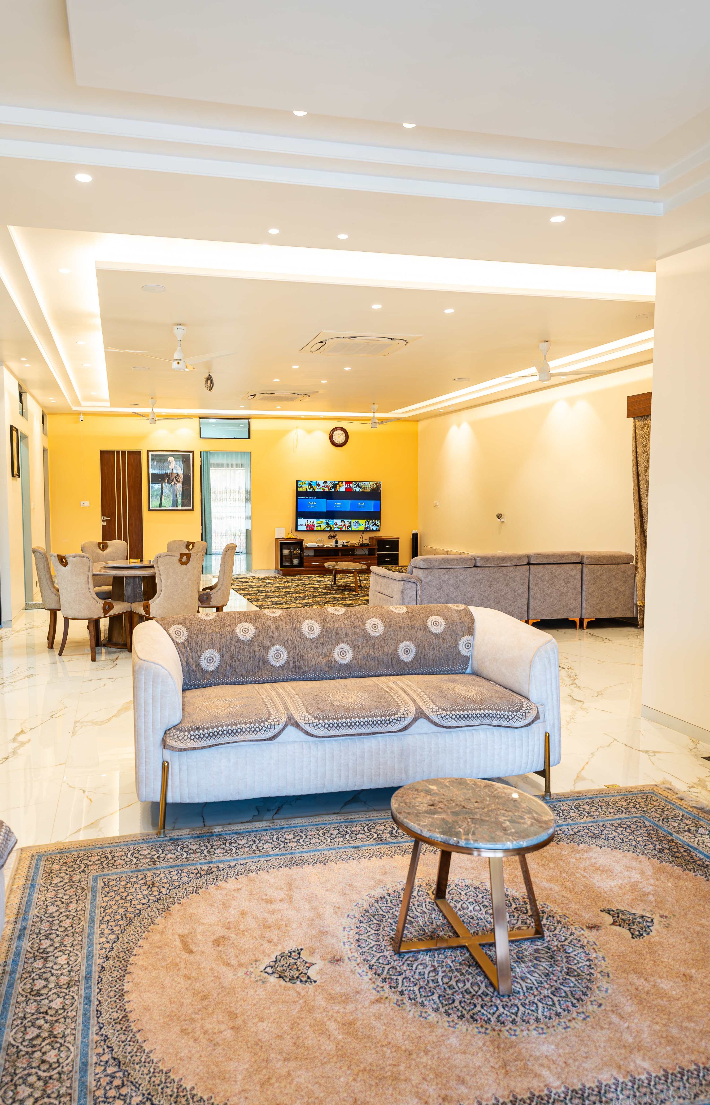 A grand living lounge with expansive layout and premium finishes, designed for comfort at scale.