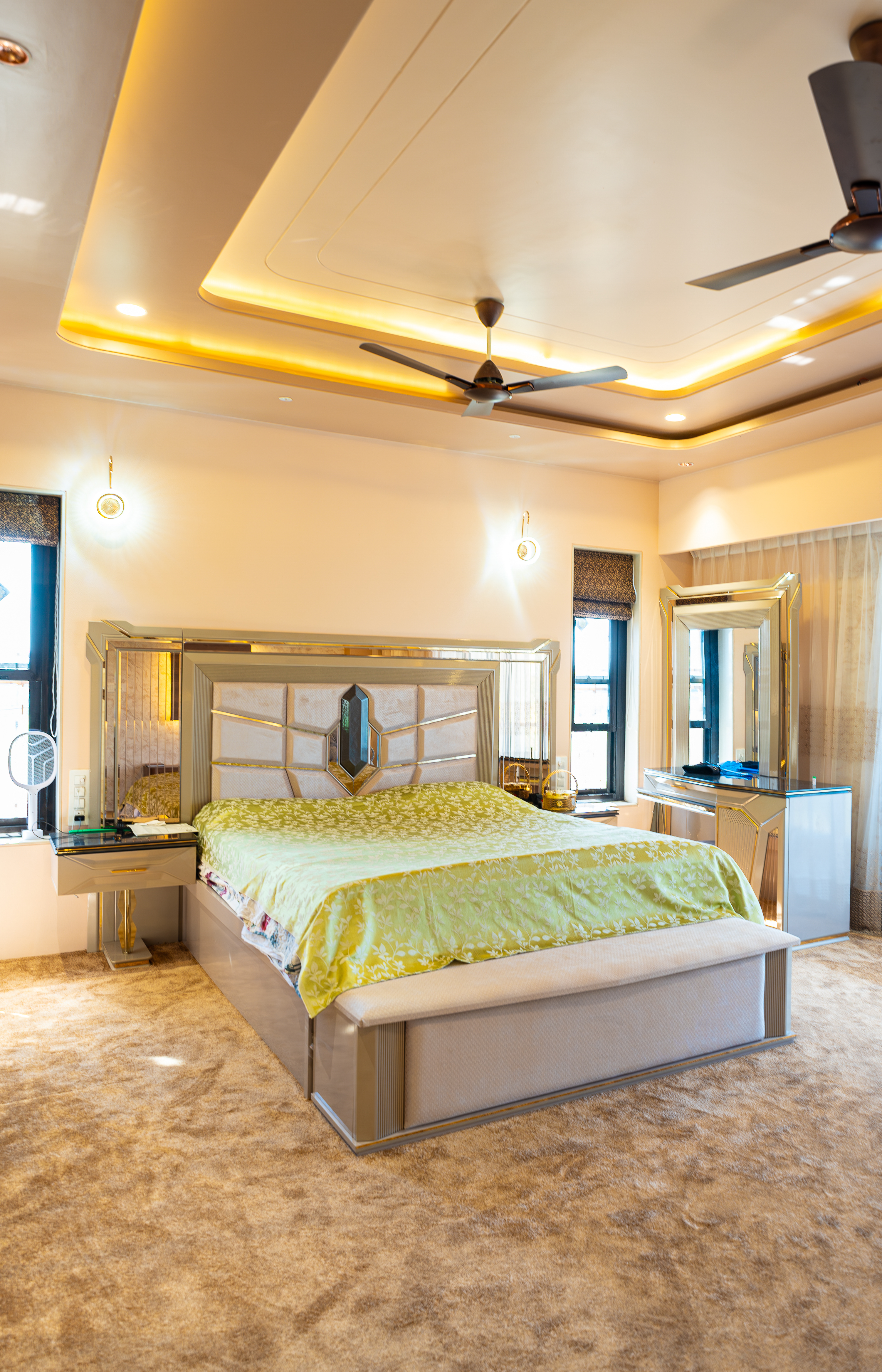 A premium master bedroom featuring layered lighting and elegant finishes for a high-end feel.
