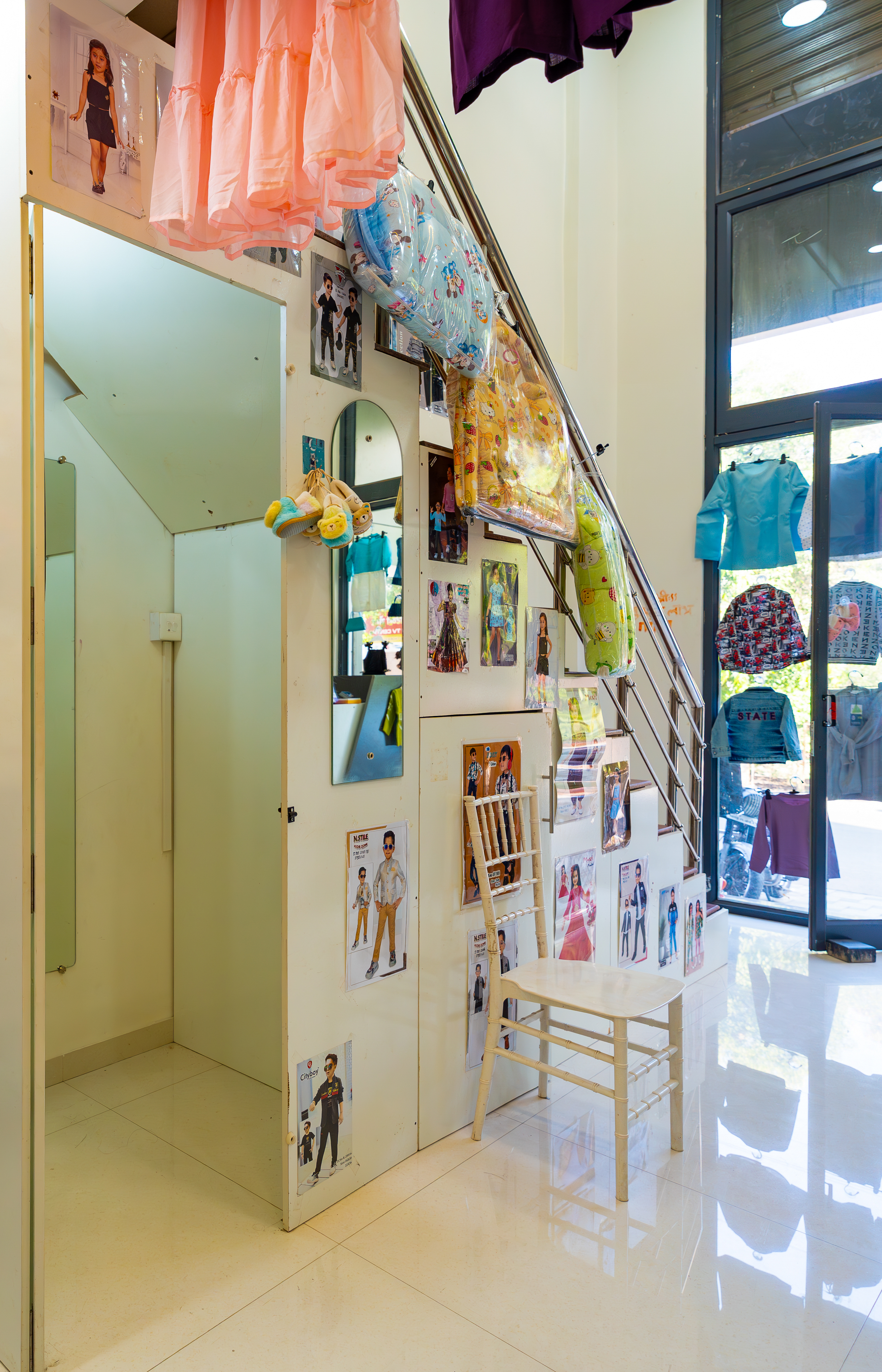 A well-integrated trial room area near the entrance, ensuring convenience without disturbing store flow.