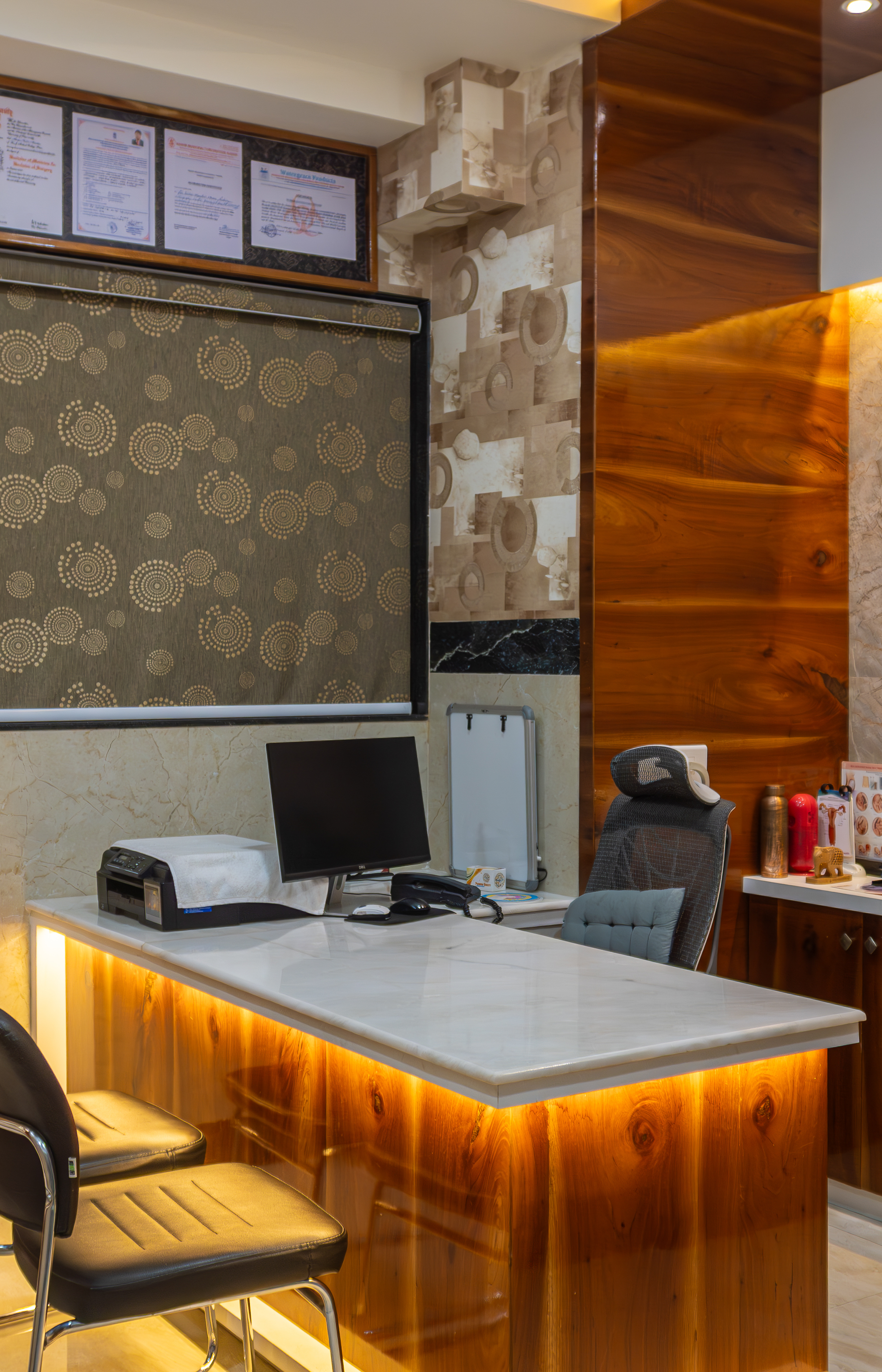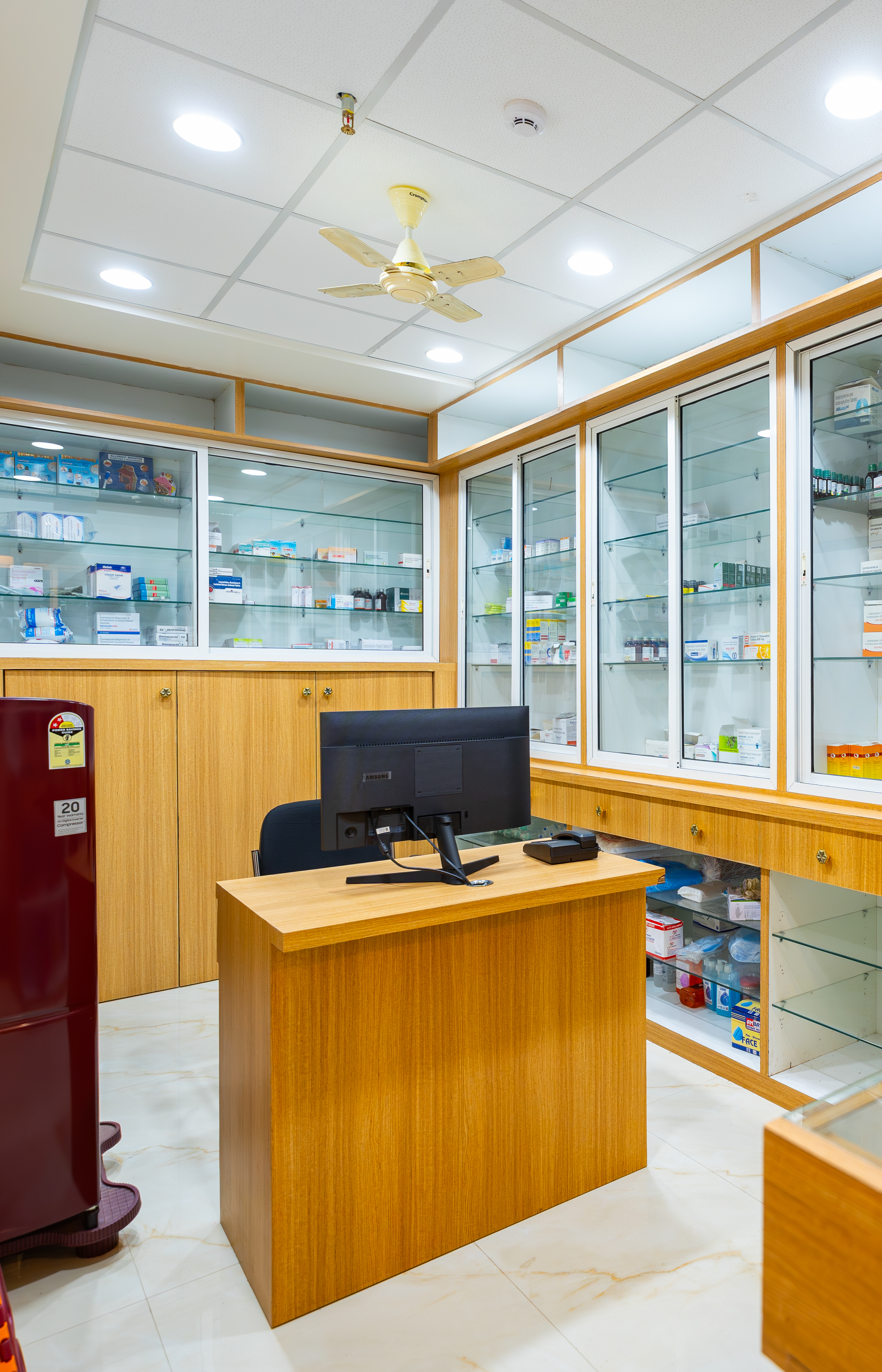 A compact and functional billing area positioned near the entrance for smooth checkout flow.