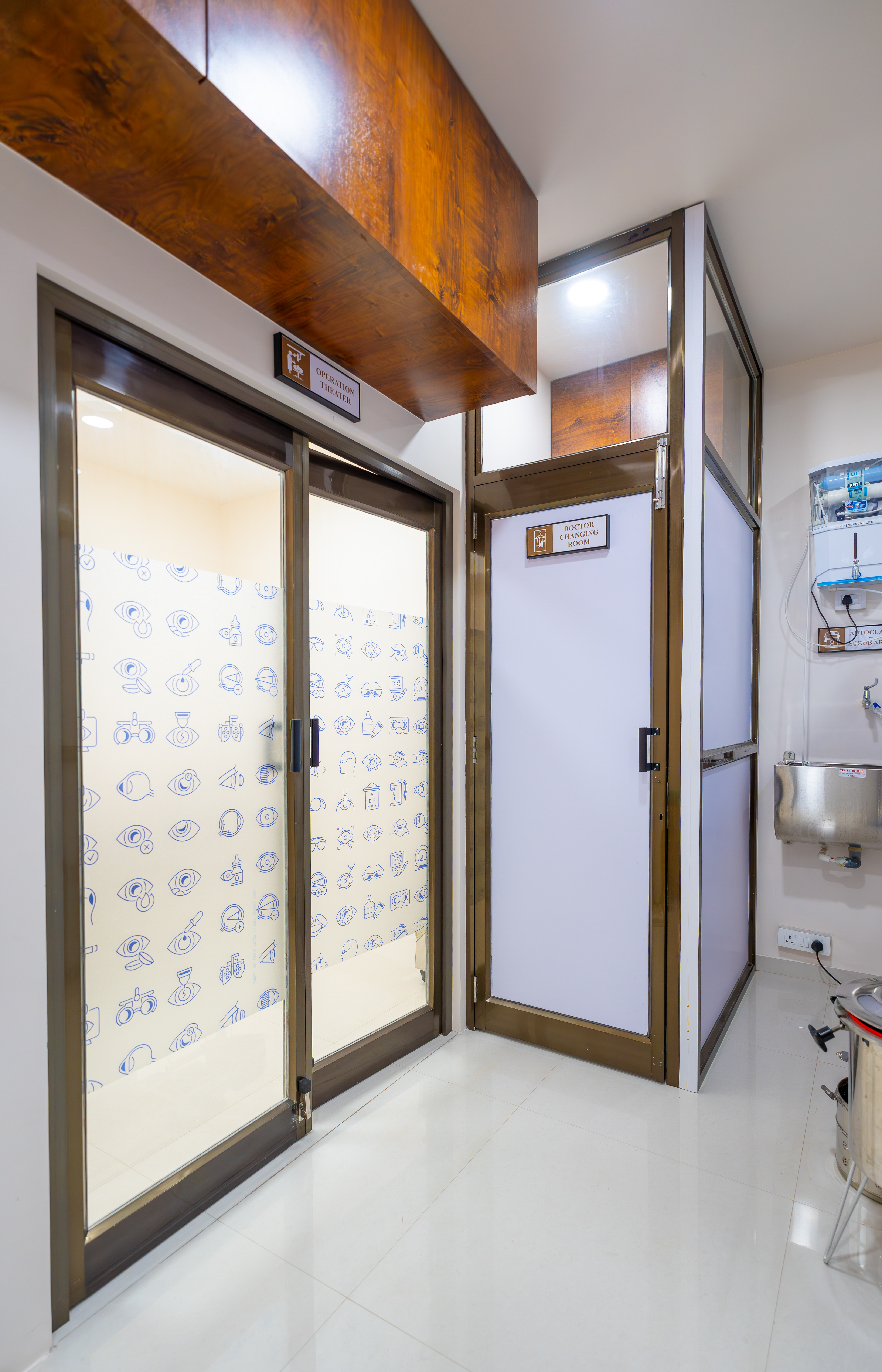 A clean wardrobe setup paired with a unique entry design, enhancing both storage and visual appeal.