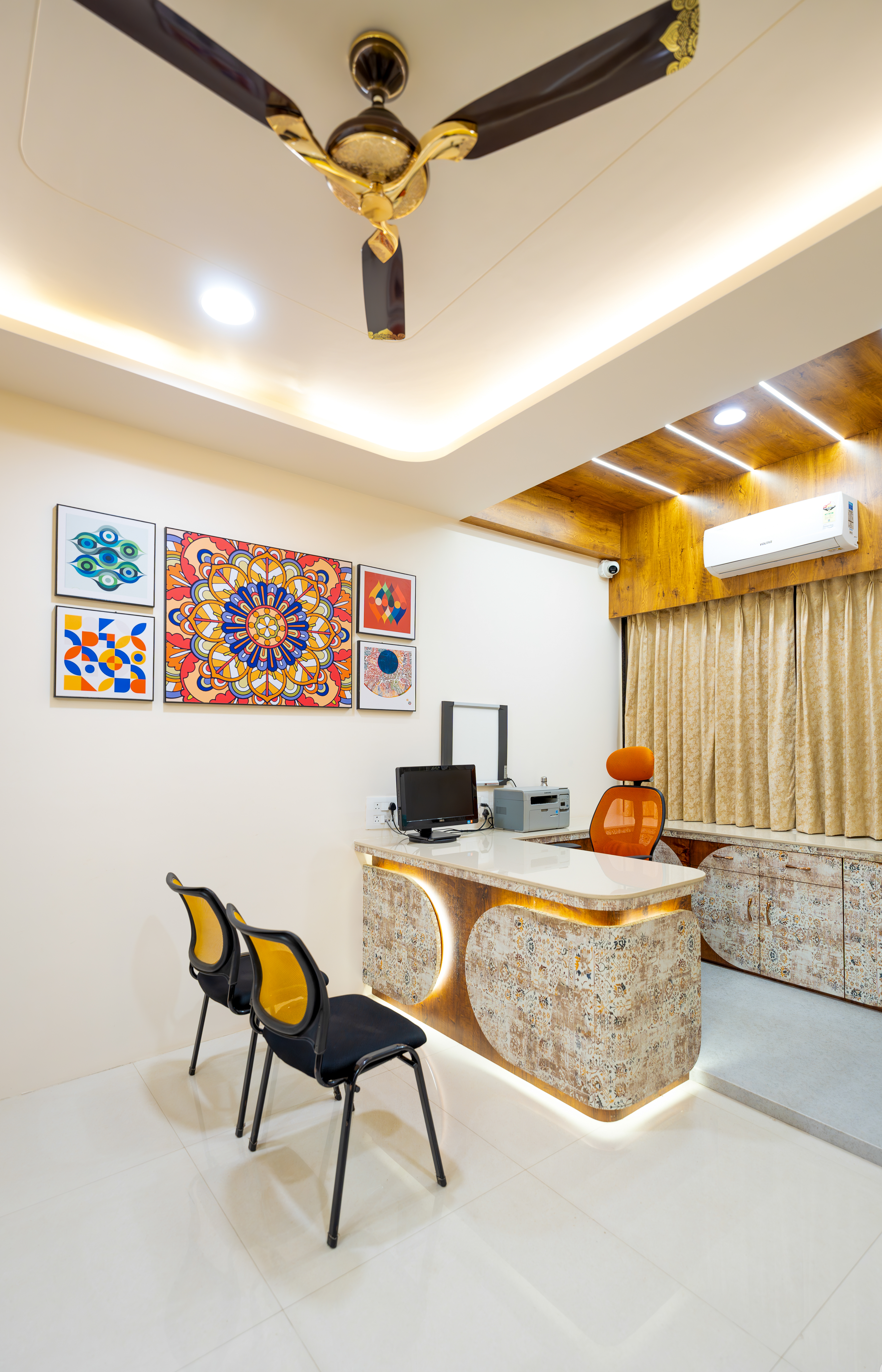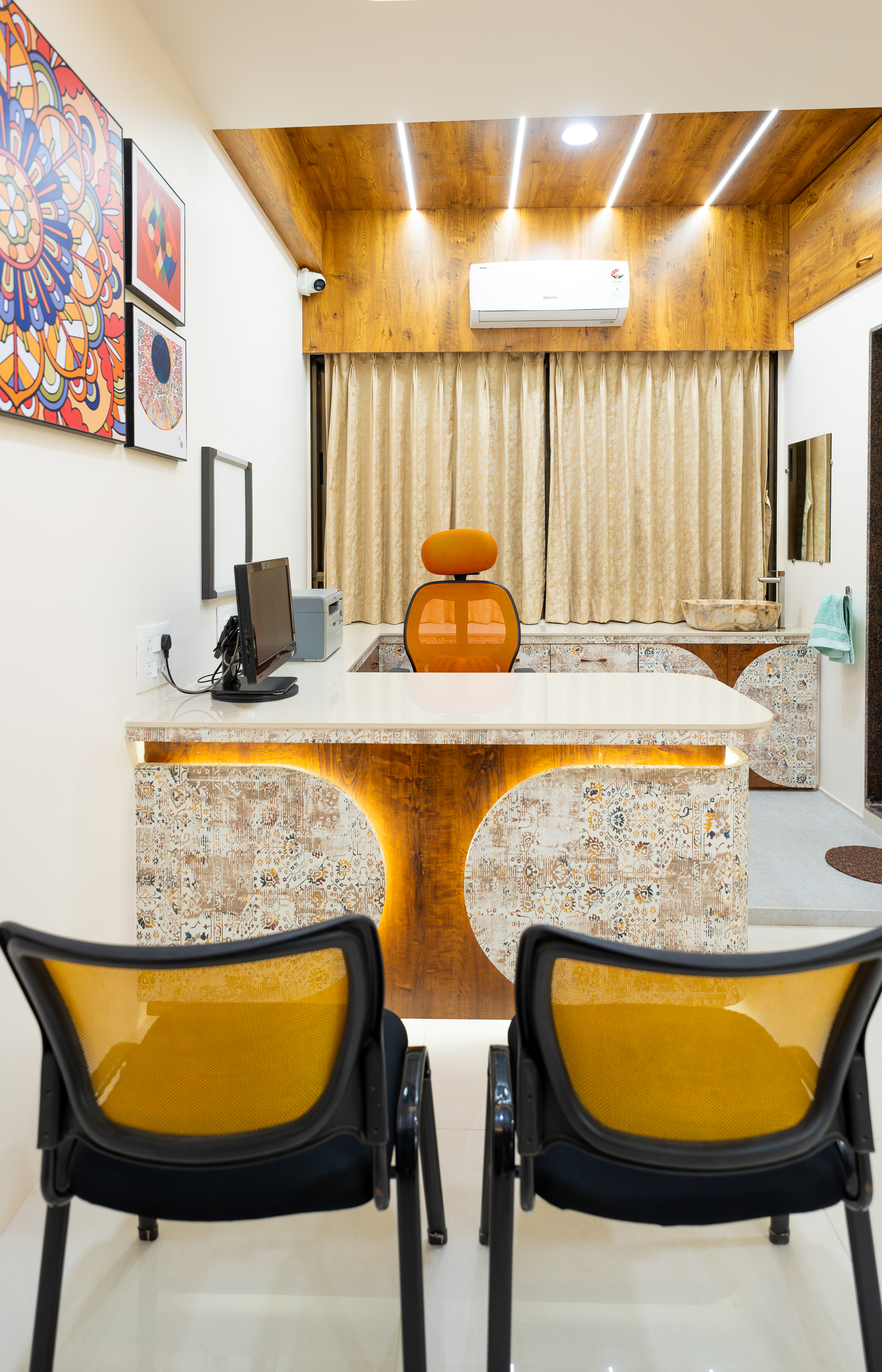 A clean and minimal seating layout designed for comfort, enhanced by soft tones and open space.