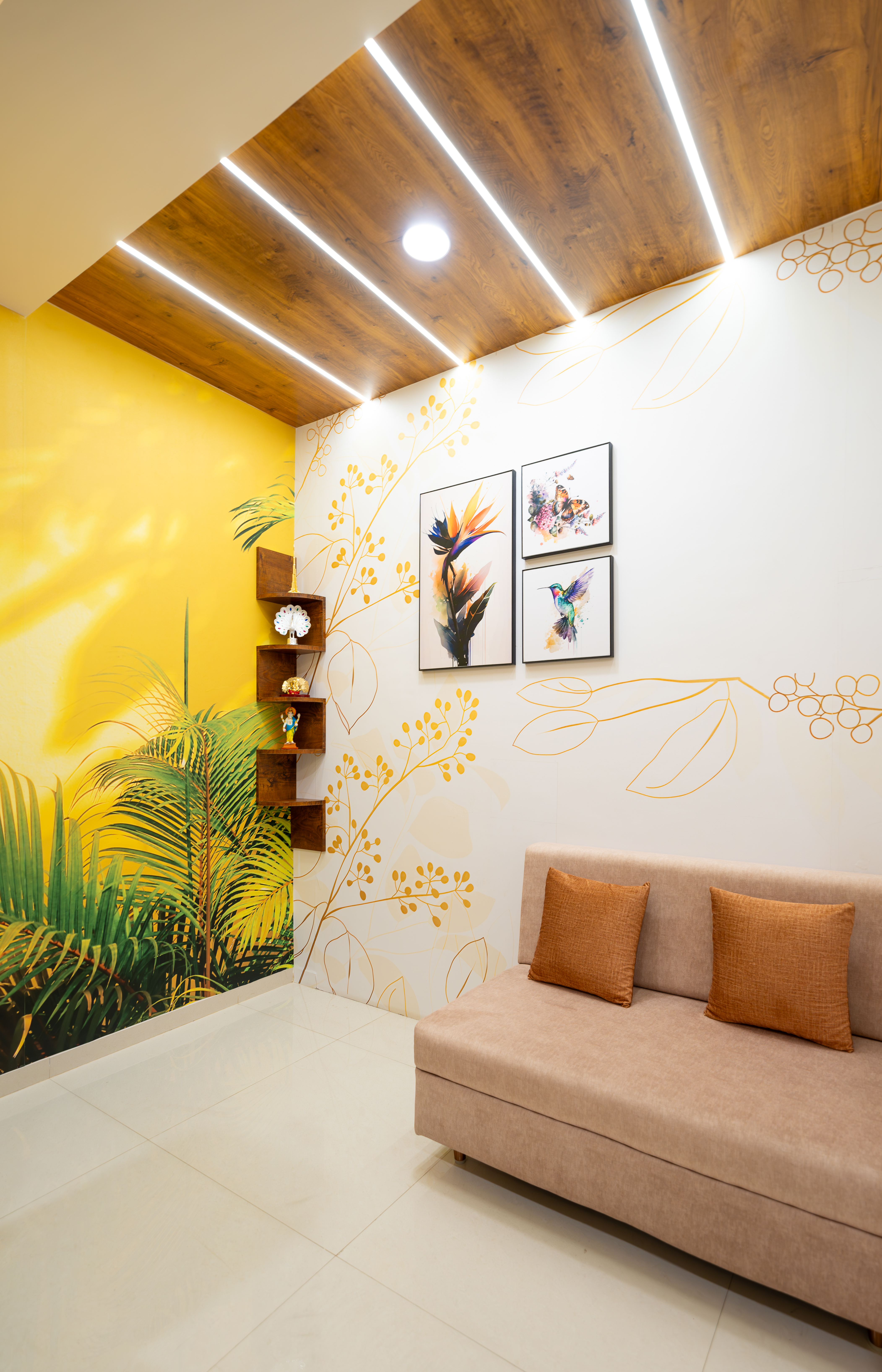 A warm and welcoming living space designed with clean lines, wooden textures, and soft lighting for everyday comfort.