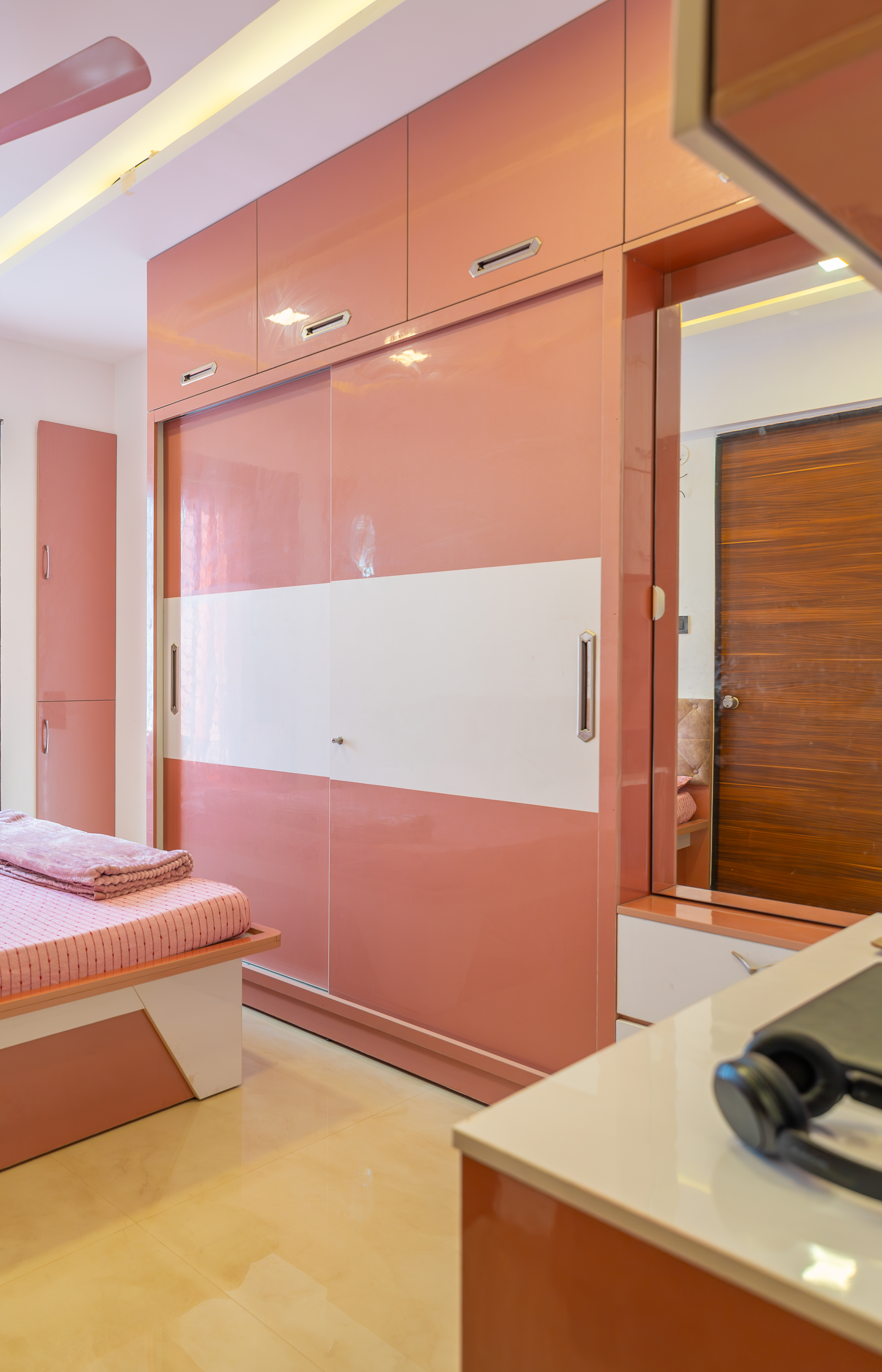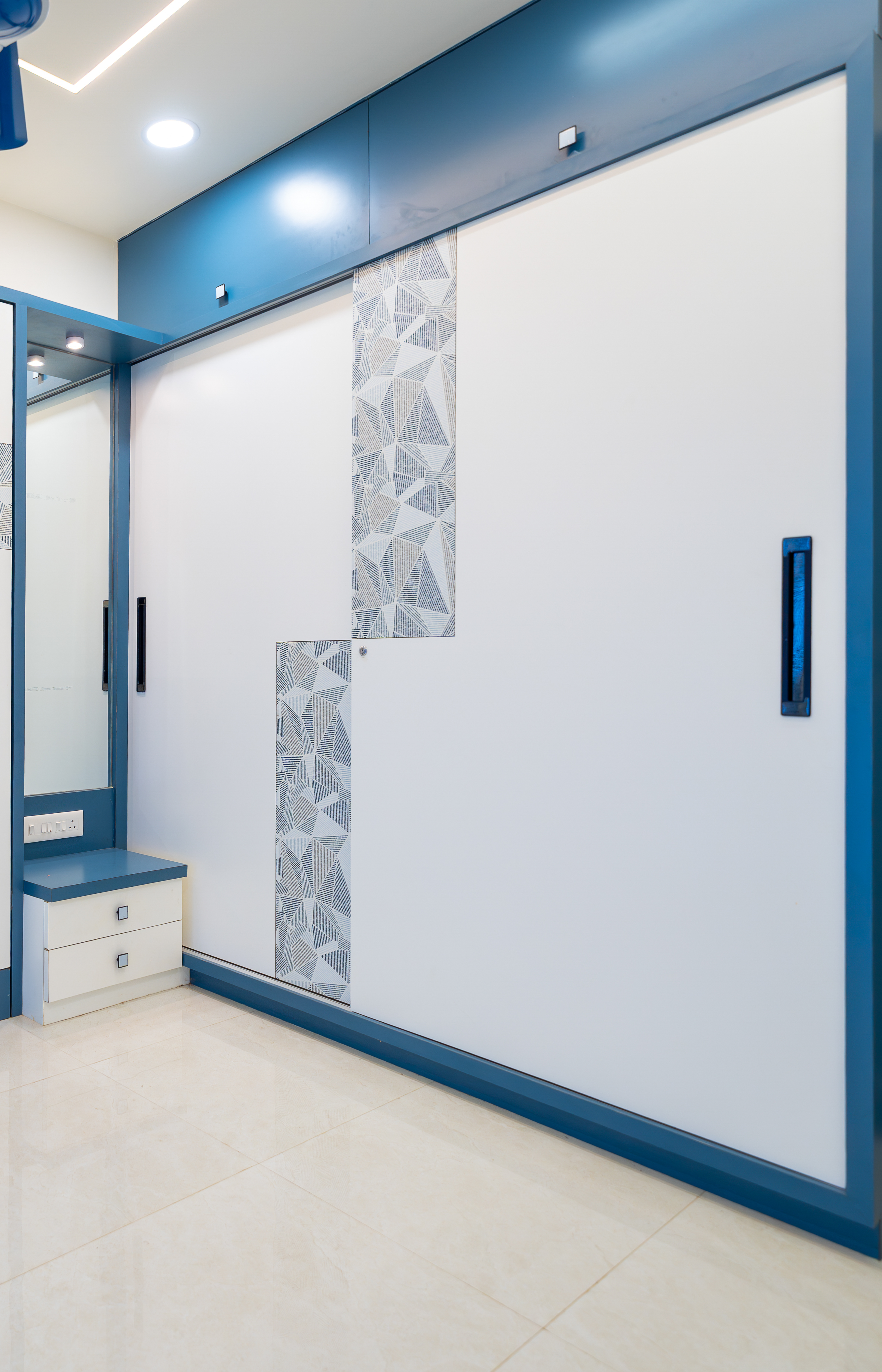 A smartly designed wardrobe system combining aesthetics and functionality with clean finishes and ample storage.