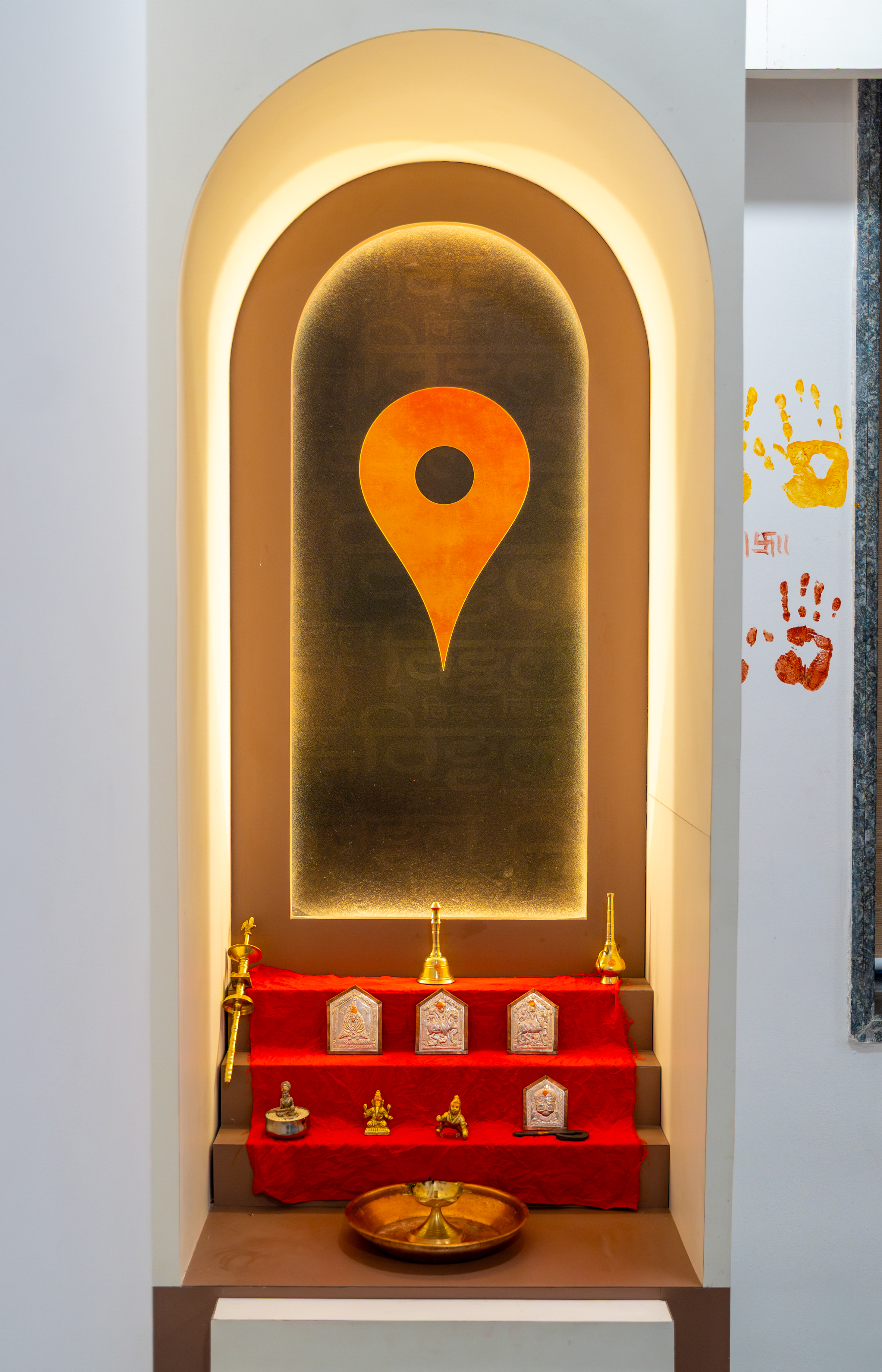A beautifully illuminated mandir niche designed to bring warmth, focus, and spiritual calm into the home.