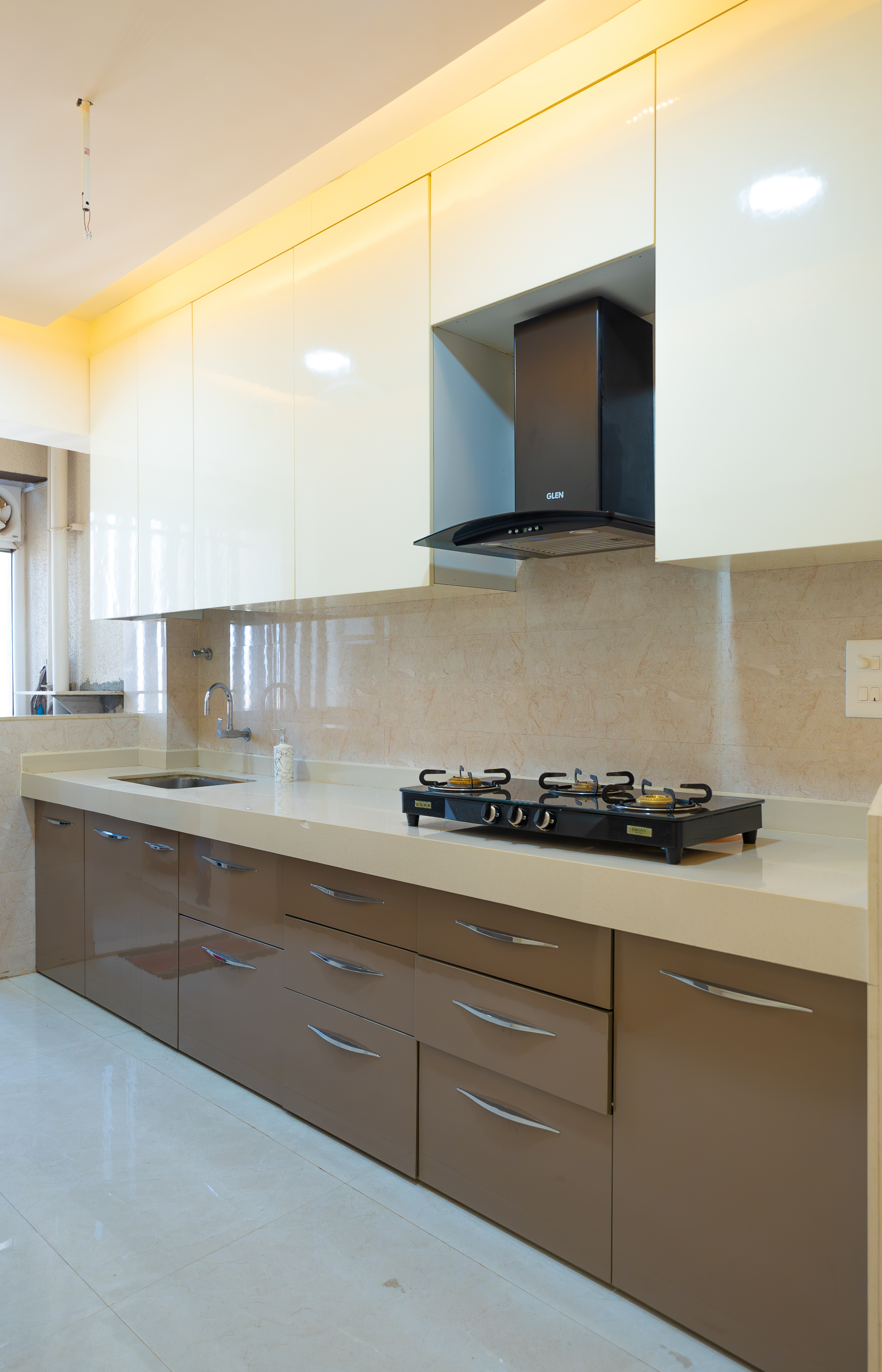 A sleek modular kitchen with efficient layout and clean finishes, designed for practical daily use.