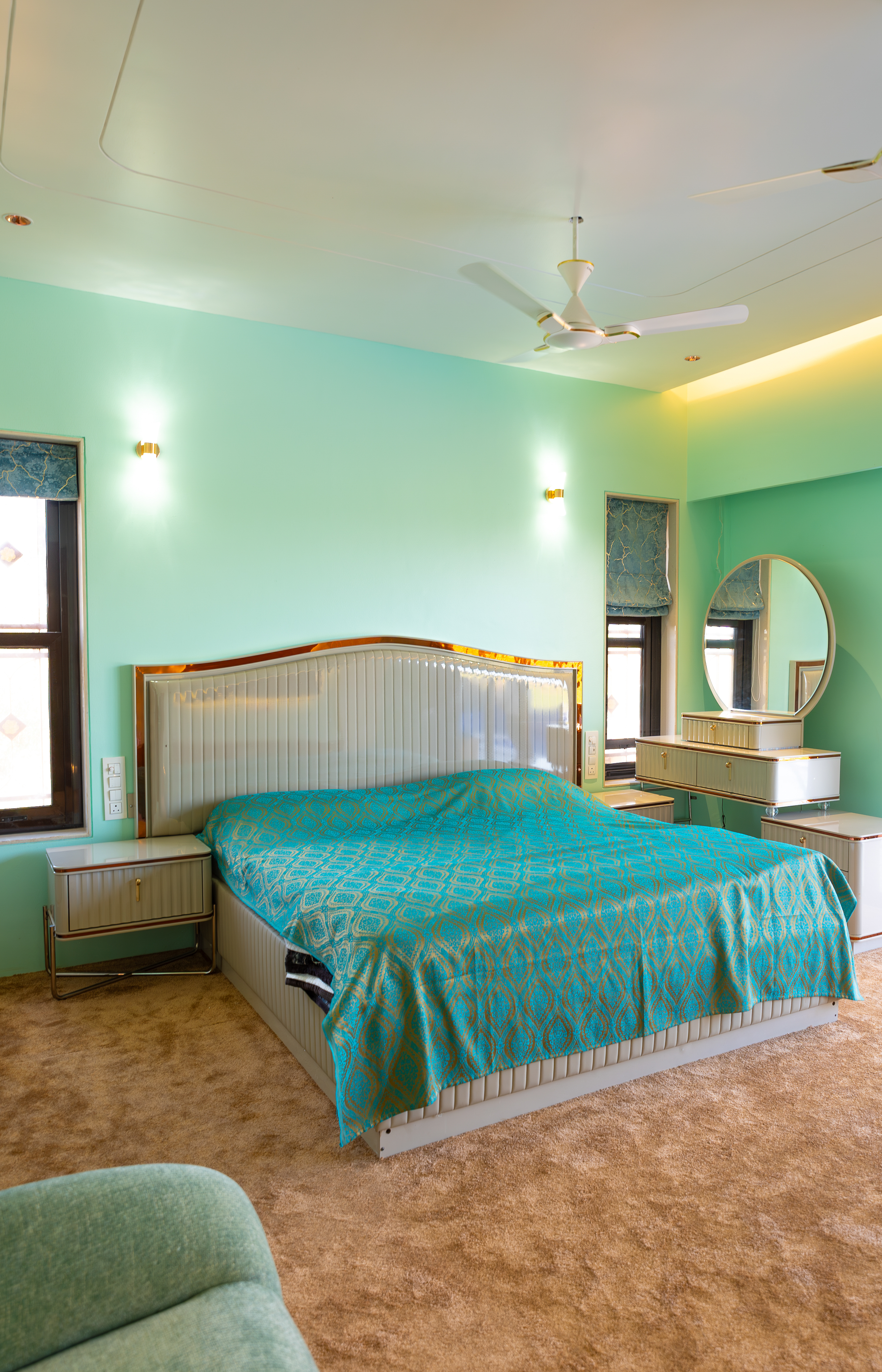 A bold bedroom concept with statement headboard and ceiling design, bringing a premium visual identity.