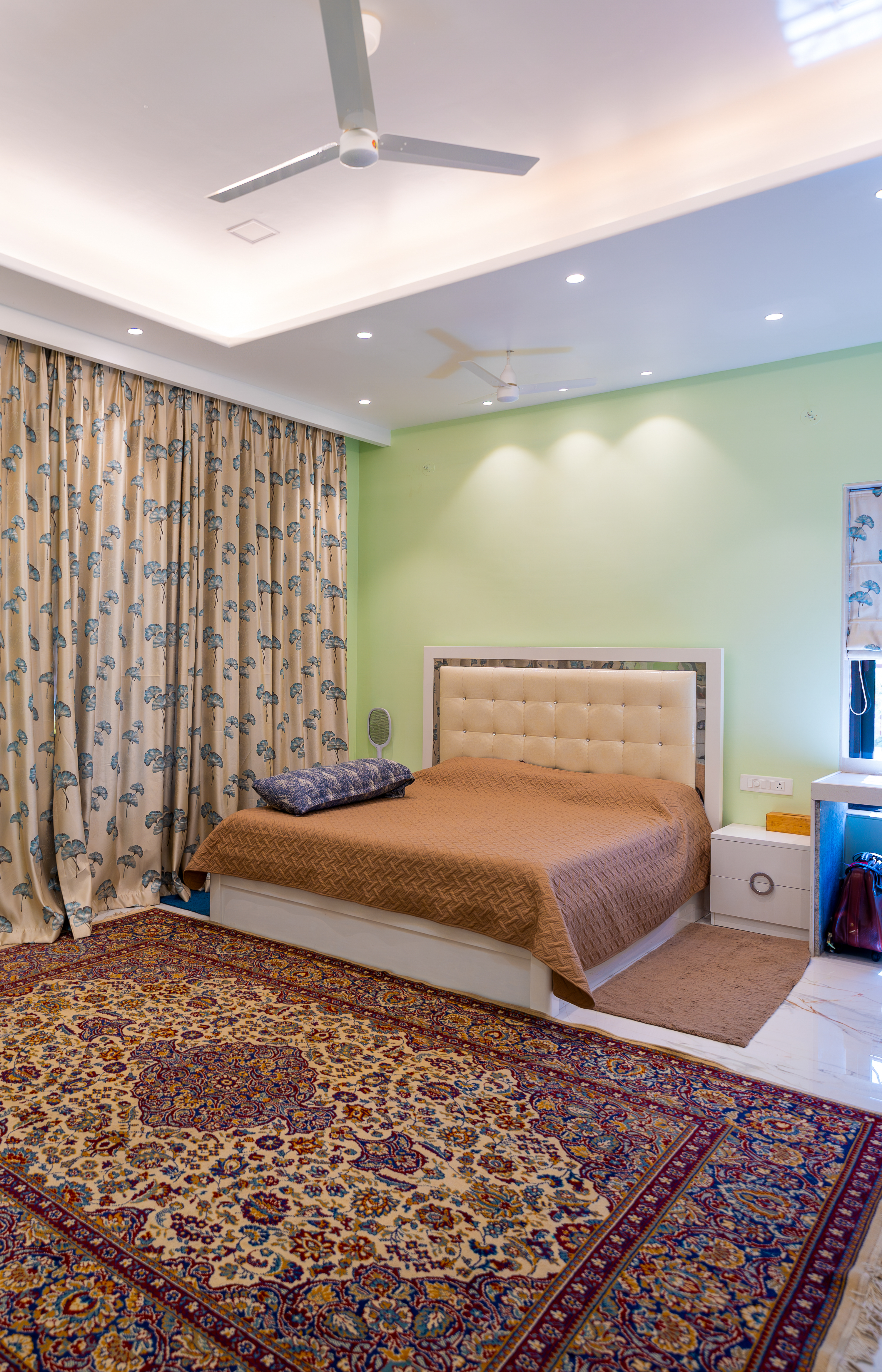 A serene bedroom with soft color palette and spacious planning for everyday comfort.