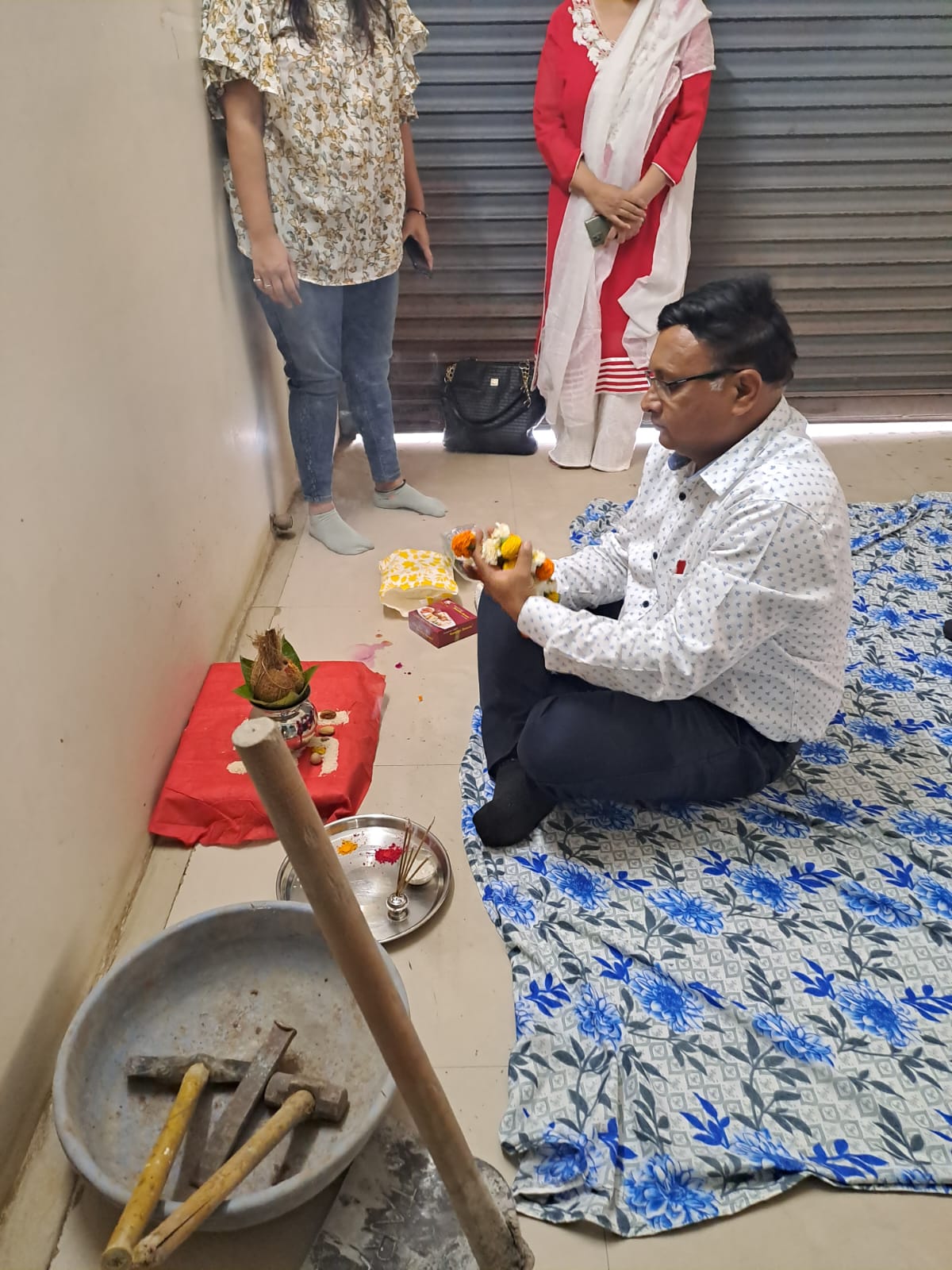 A thoughtfully crafted mandir with intricate detailing, creating a peaceful and spiritual focal point within the home.
